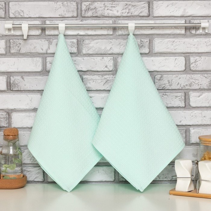 Набор кухонных полотенец Доляна, цвет салатовый, 35х60см-2шт, 100% хл, вафля, 220 гр/м2