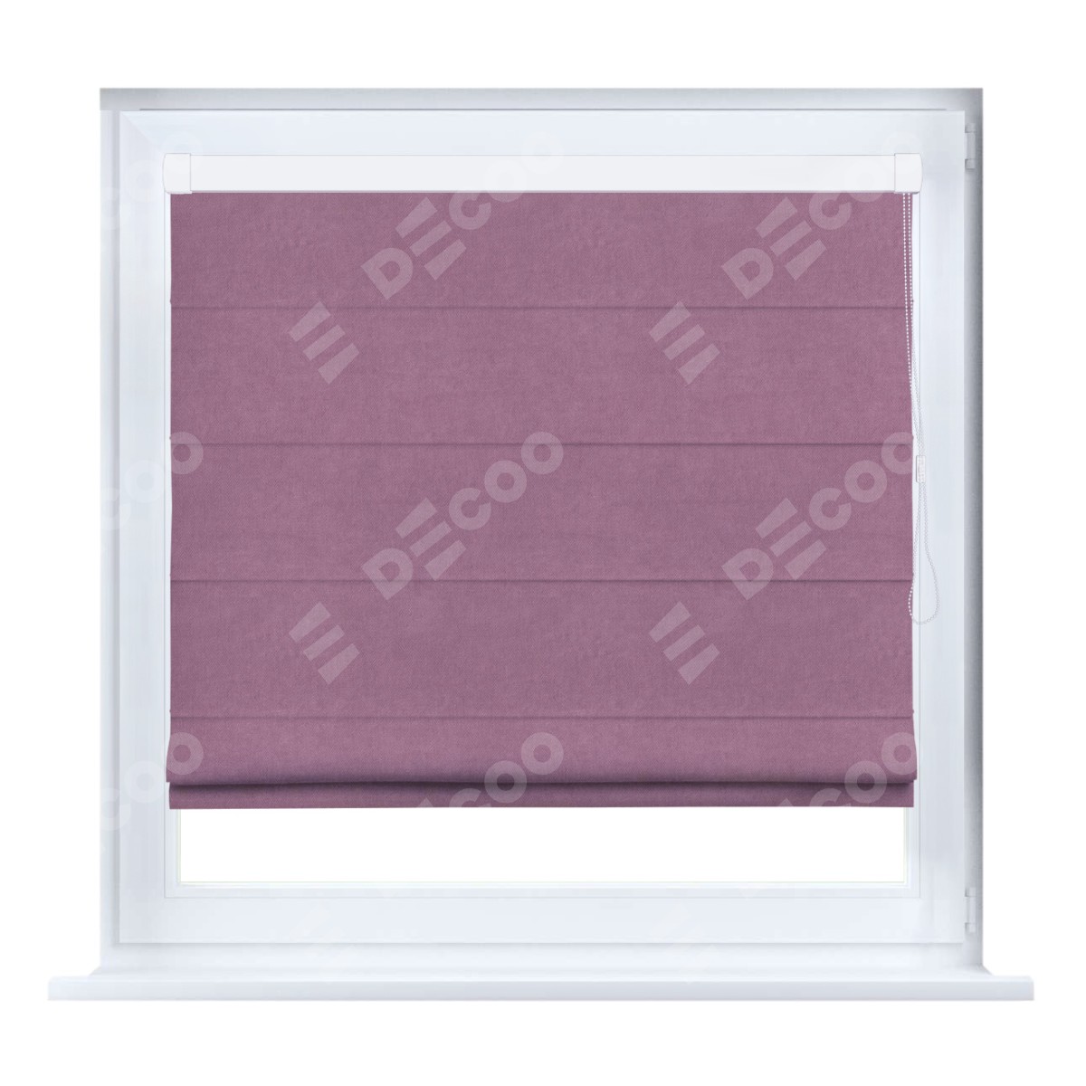 Римская штора кассетного типа, производителя «Cortin», устанавливается только на пластиковые окна и прилегает к стеклопакету, пошита из ткани вельвет лиловый, артикул 17752.