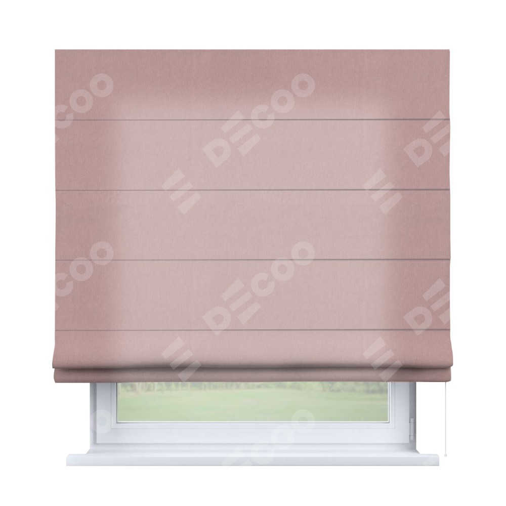 Римская штора производителя «Cortin», используется для проёма, пошита из ткани вельвет розовая пудра, артикул ткани 14132. Имеет универсальный механизм и подходит для монтажа: на потолок, на стену и в нишу.