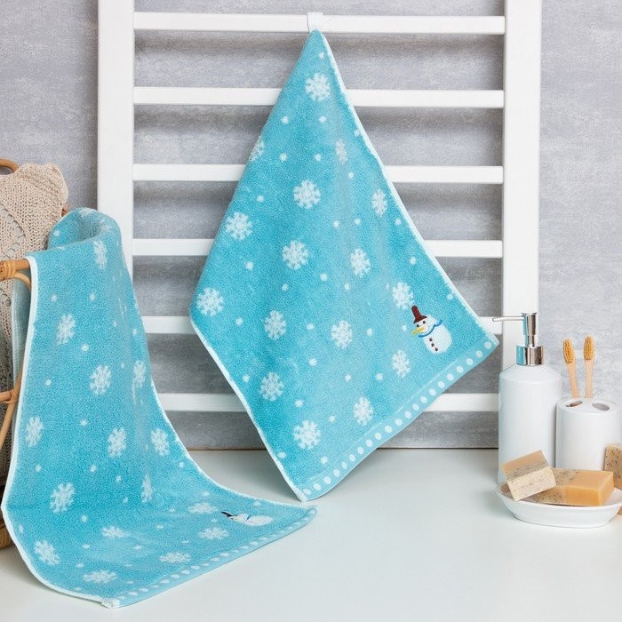 Полотенце махровое LoveLife «Снеговик» 35*75±3 см, цв.голубой, 100% хлопок, 350 г/м2