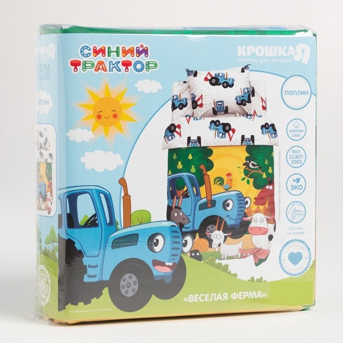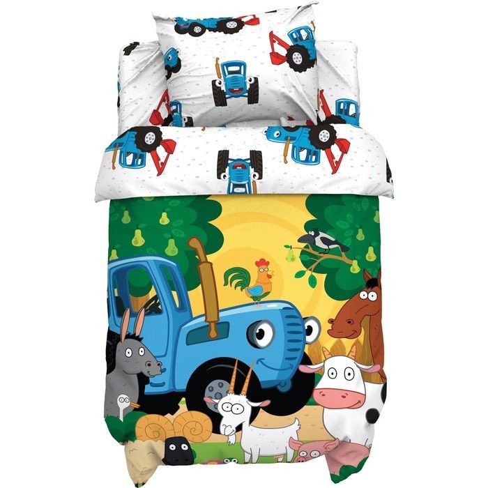 Постельное бельё Синий трактор «Веселая ферма» 112×147 см, 60×120+20 см, 40×60 см, 100% хл, поплин 125г/м