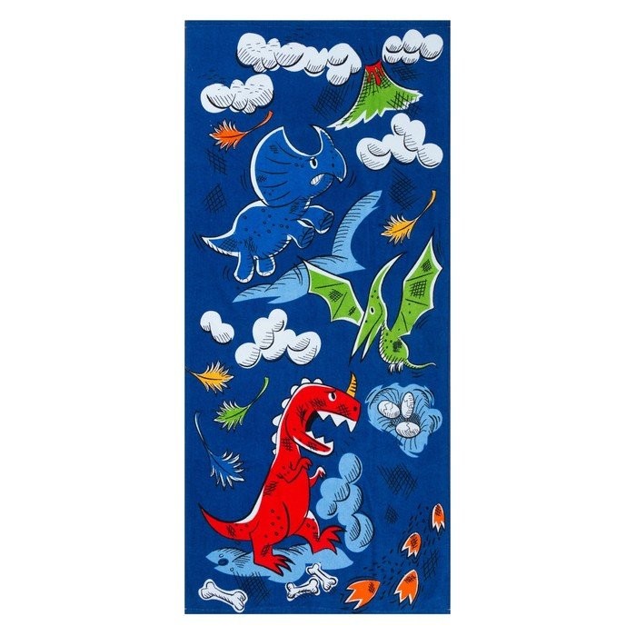 Полотенце Love Life «Динозаврики» 70*140 см, велюр/махра 340гр/м2, 100% хлопок