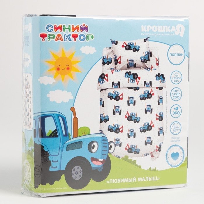 Постельное бельё Синий трактор «Любимый малыш» 112×147 см, 60×120+20 см, 40×60 см, 100% хл, поплин 125г/м