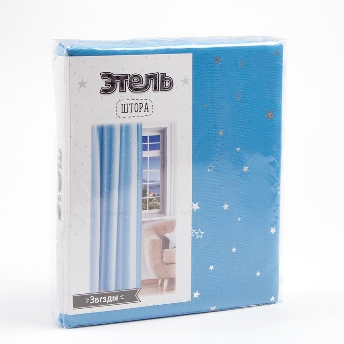 Портьера Этель «Звезды» без держателя, цвет голубой, 110×260 см, блэкаут, 100% полиэстер