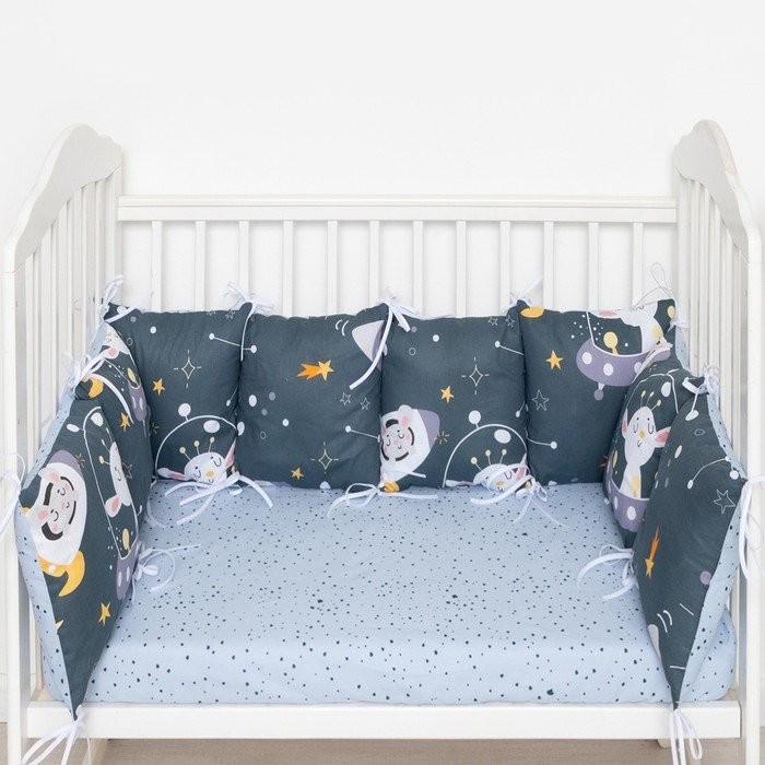 Бортики в кроватку Крошка Я «Ночные приключения» (35×35 см — 8 шт), 100% хлопок