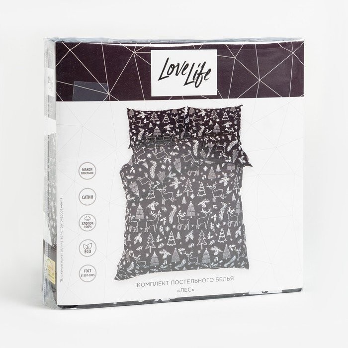 Постельное бельё LoveLife 1, 5сп «Лес» 143×215 см, 150×225 см, 50×70 см-2шт, 100%хлопок, сатин