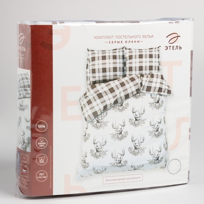 Постельное бельё Этель 2 сп «Серые олени» 175×215 см, 200×220 см, 70×70 см — 2 шт