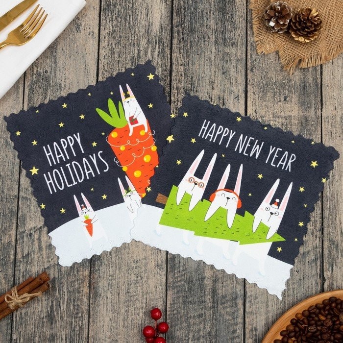 Набор салфеток для уборки Доляна «Hollidays» 20×20 см-2 шт, микрофибра