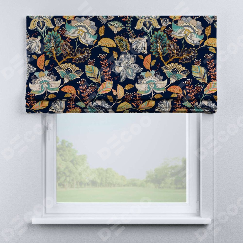 Римская штора «Кортин» для проема «Тёмный букет» отлично подойдёт для интерьера: в кухню, в спальню и на балкон.