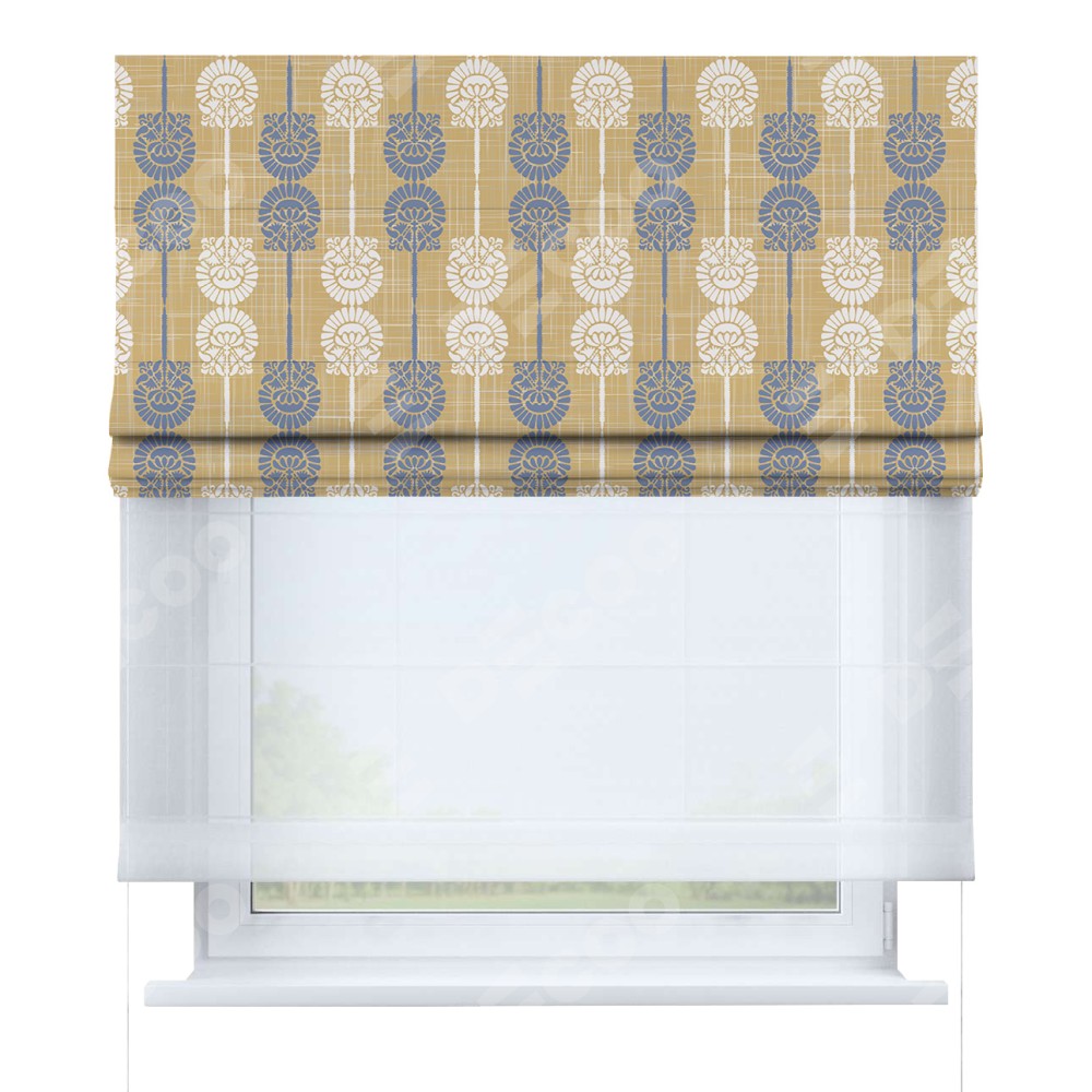 Римская штора день-ночь производителя «Cortin», используется для проёма, пошита из двух полотен, с лицевой блэкаут с нанесением сублимационной печати «Венок из ромашки», вторая ткань тюль (по стандарту комплектуется тюль белого цвета артикул V-01). Имеет универсальный механизм и подходит для монтажа: на потолок, на стену и в нишу.
