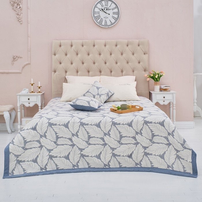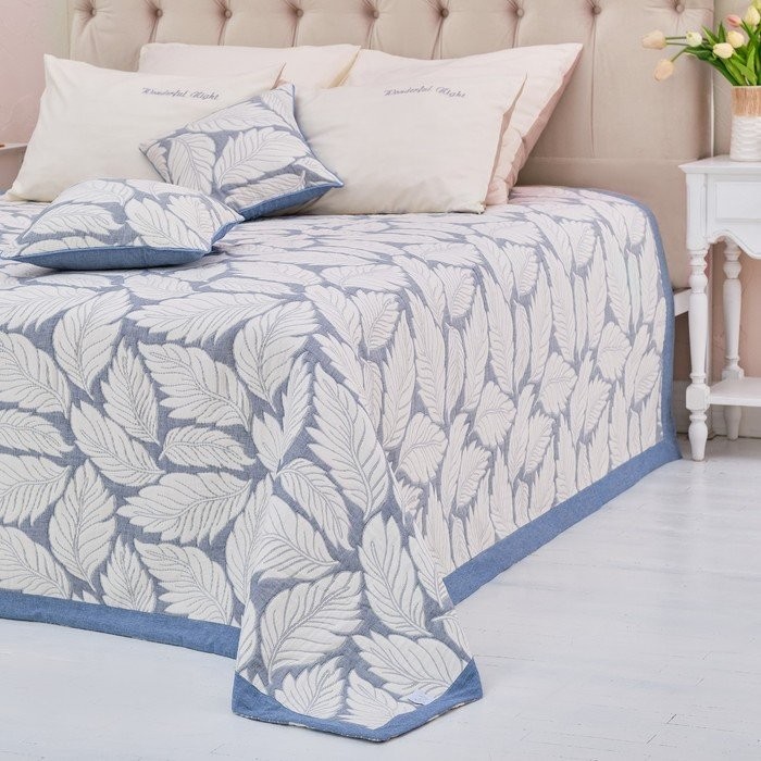 Покрывало хлопковое Этель «Листопад» 180×240 см, цвет синий, 100% хлопок, 300гр/м2