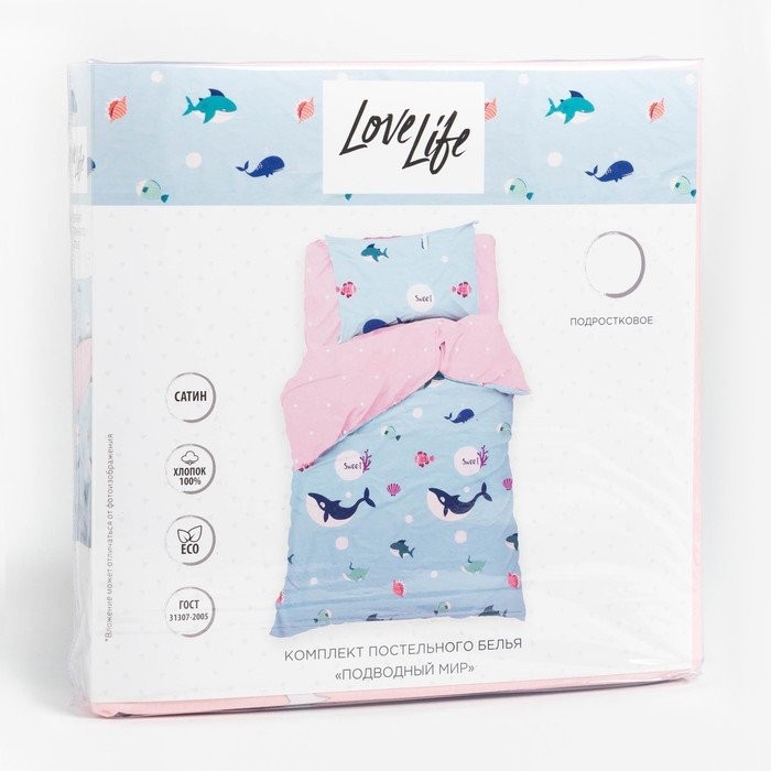 Постельное бельё 1.5сп LoveLife «Подводный мир» 143×215 см, 150×214 см, 70×70 см-1 шт, 125г/м2 сатин
