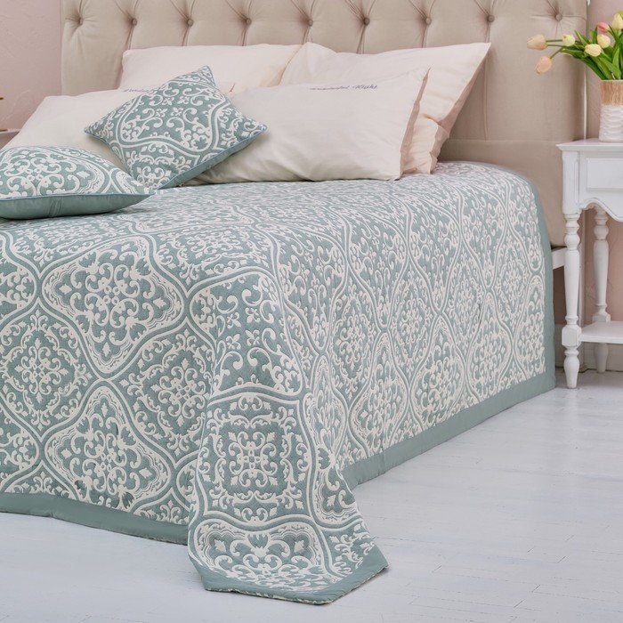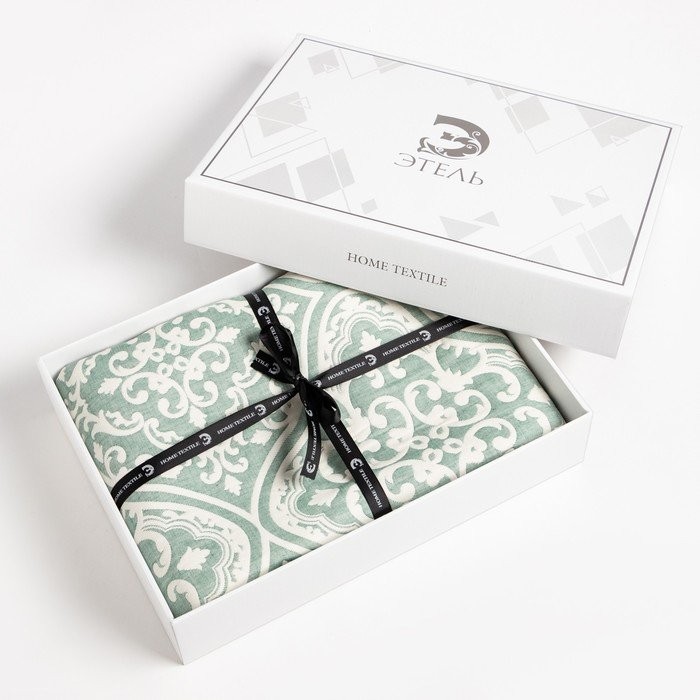 Покрывало хлопковое Этель «Орнамент» 200×240 см, цвет зелёный, 100% хлопок, 300гр/м2