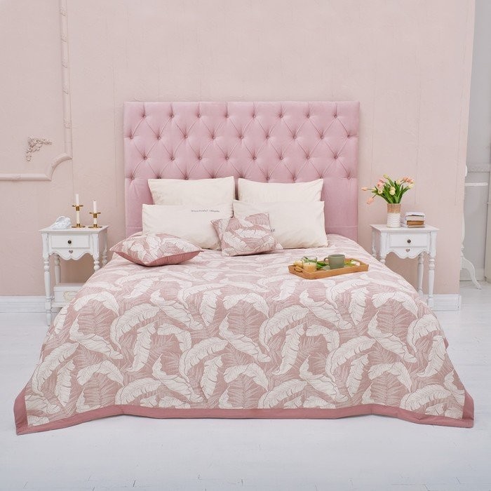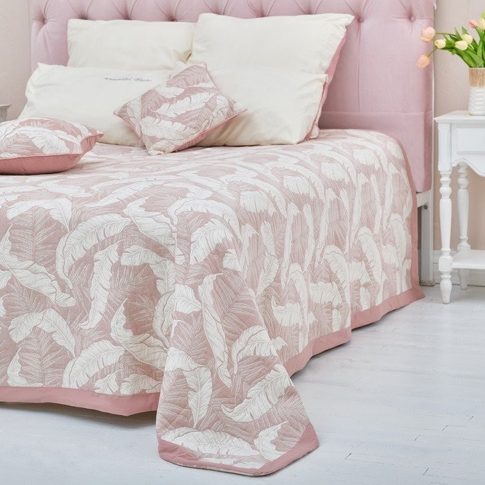 Покрывало хлопковое Этель «Перья» 150×240 см, цвет бежевый, 100% хлопок, 300гр/м2