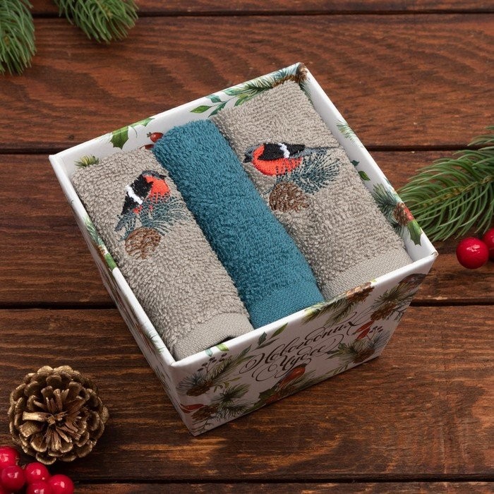 Набор полотенец «Новогодних чудес» 30×30 см-3шт, 100% хлопок 340 г/м2