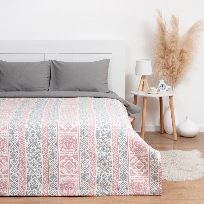 Покрывало хлопковое Этель «Инди» 150×240 см, цвет серо-розовый,100% хлопок, 300гр/м2