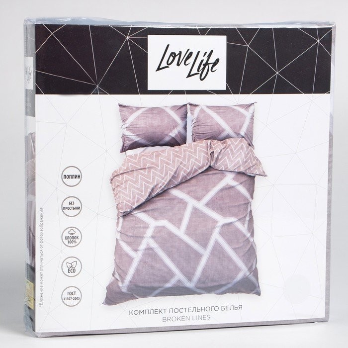 КПБ евро LoveLife Broken lines: пододеяльник 200*217см+наволочка 50*70см-2шт,поплин,125г/м²