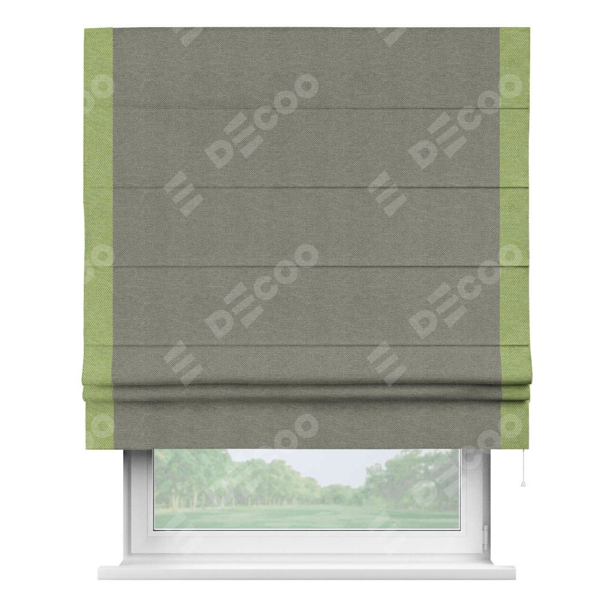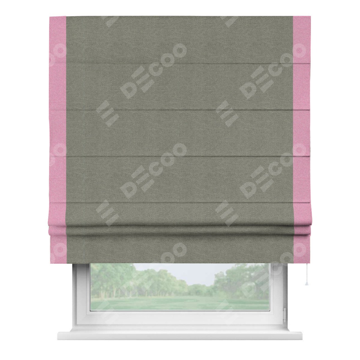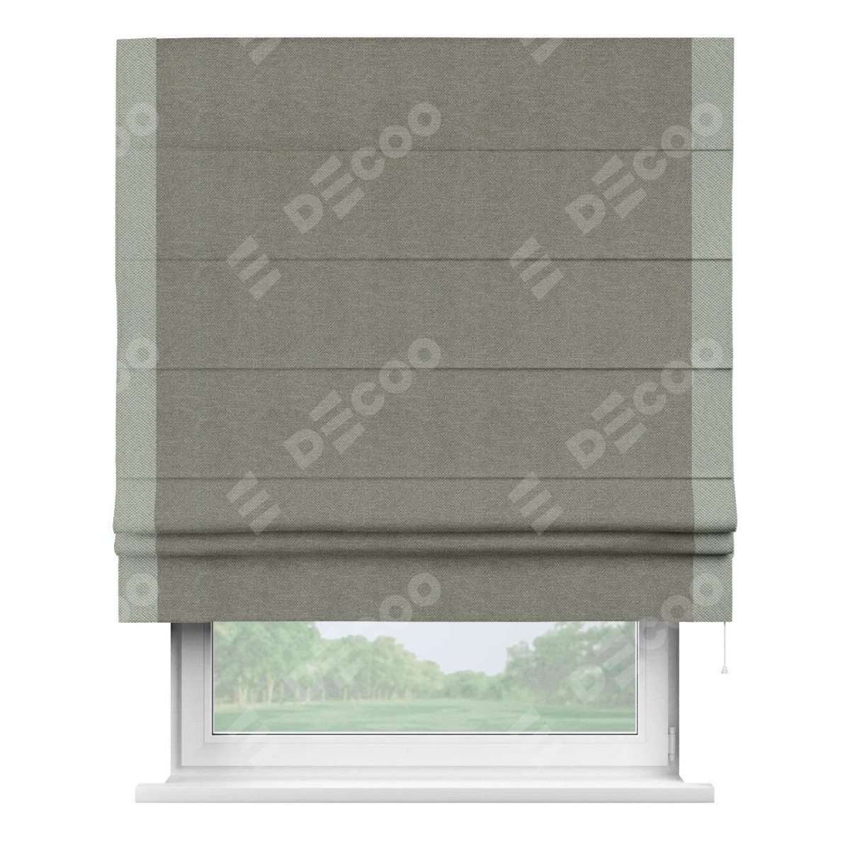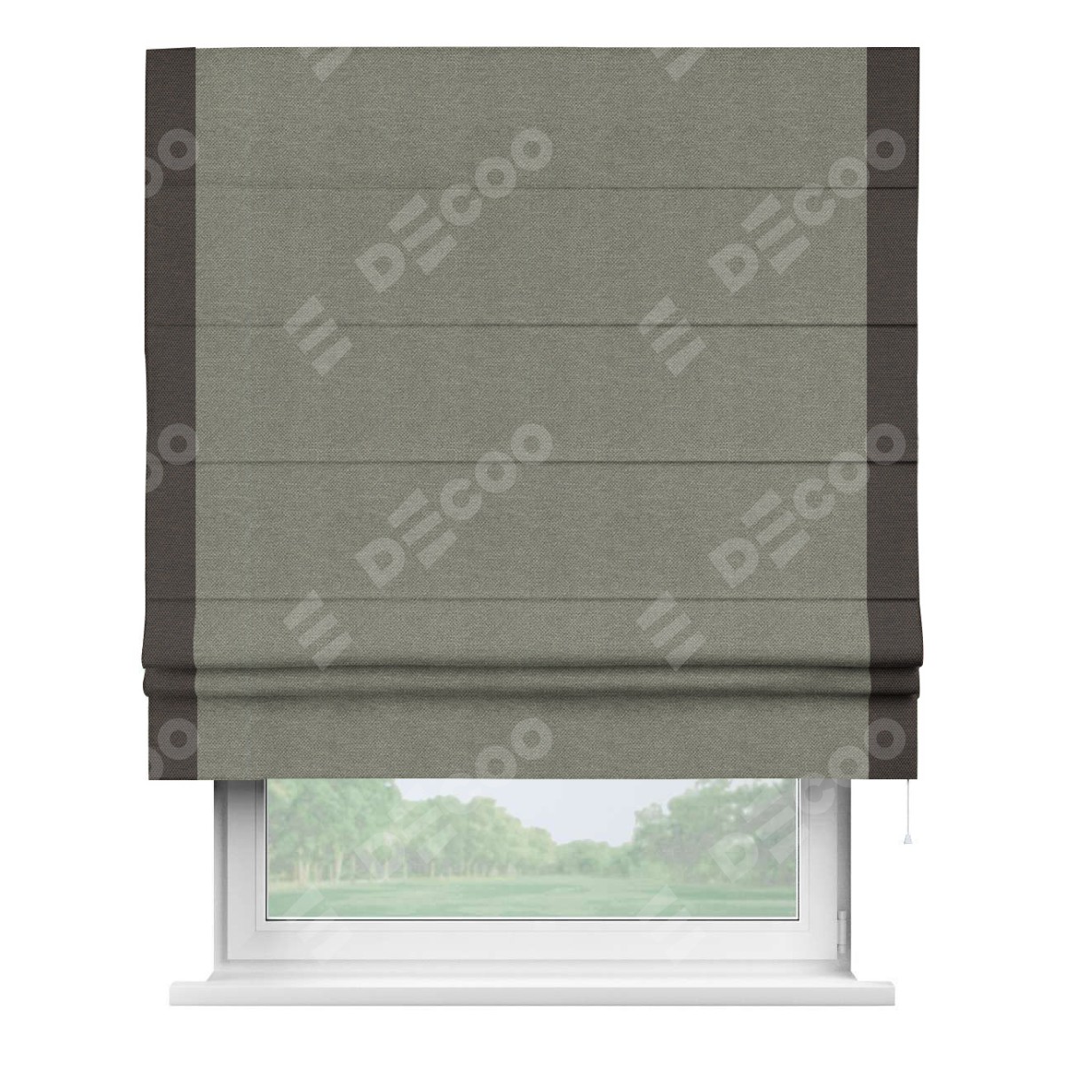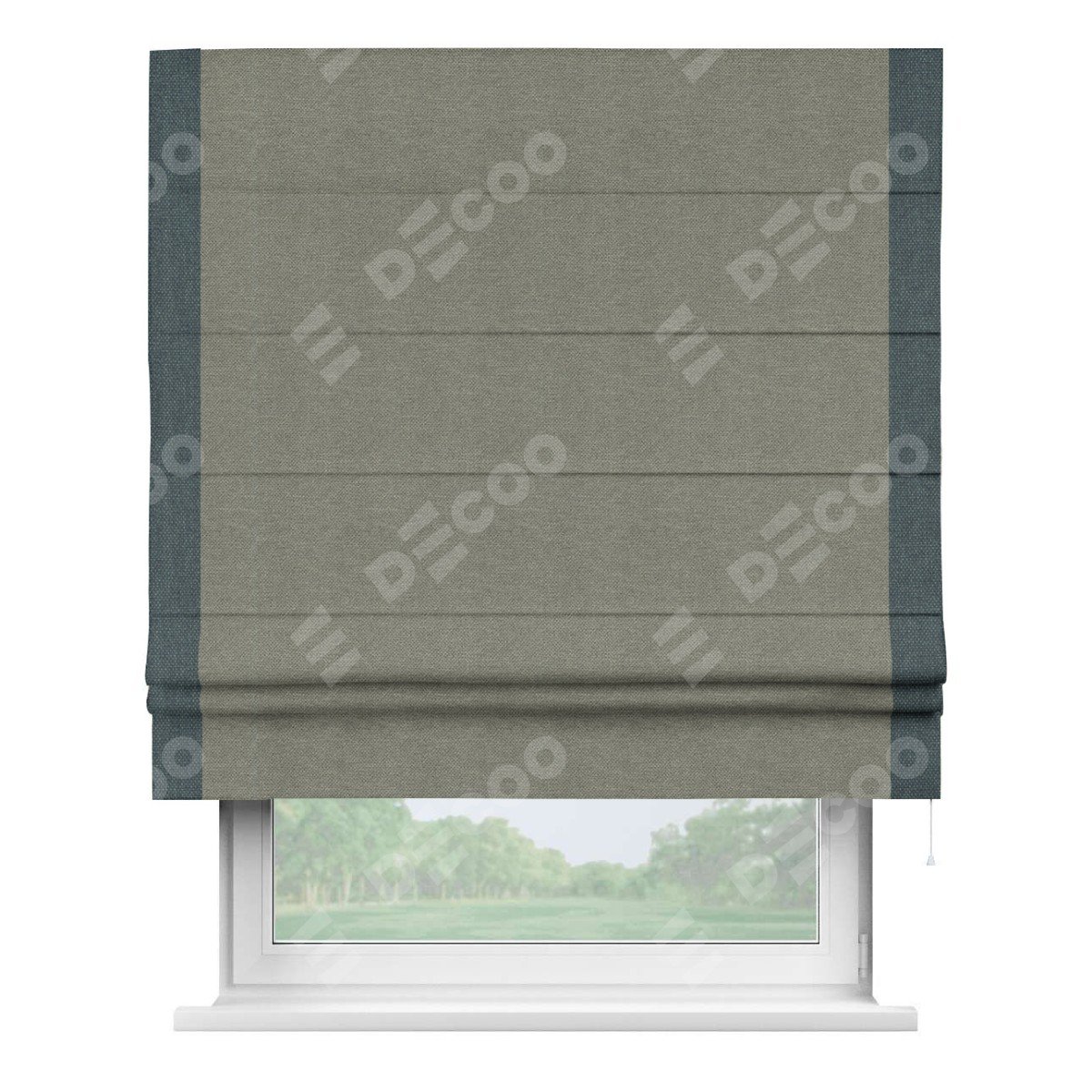 Римская штора «Кортин» с кантом Стрим Дуо, для проема, ткань лён димаут, стальной