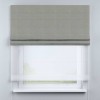 Римская штора день-ночь производителя «Cortin», используется для проёма, пошита из двух полотен, с лицевой стороны лён димаут серый артикул 00001, вторая ткань тюль (по стандарту комплектуется тюль белого цвета артикул V-01). Имеет универсальный механизм и подходит для монтажа: на потолок, на стену и в нишу.