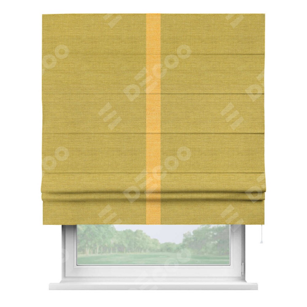 Римская штора производителя «Cortin», используется для проёма, пошита из ткани лён светло-салатовый, артикул 53438. Отделка шторы кантом «Хайвэй», ткань для канта используется из льна разной расцветки на выбор. Имеет универсальный механизм и подходит для монтажа: на потолок, на стену и в нишу.