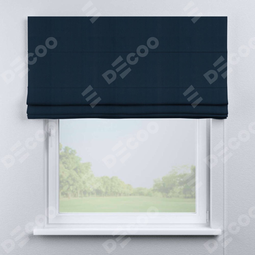 Римская штора производителя «Cortin», используется для проёма, пошита из ткани блэкаут однотонный синий, артикул ткани 29327. Имеет универсальный механизм и подходит для монтажа: на потолок, на стену и в нишу.
