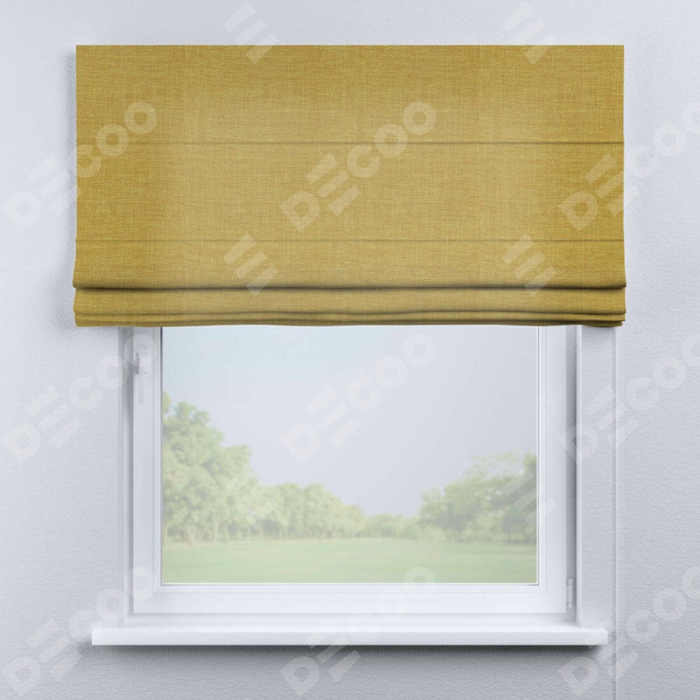 Римская штора производителя «Cortin», используется для проёма, пошита из ткани лён горчичный, артикул ткани 74740. Имеет универсальный механизм и подходит для монтажа: на потолок, на стену и в нишу.