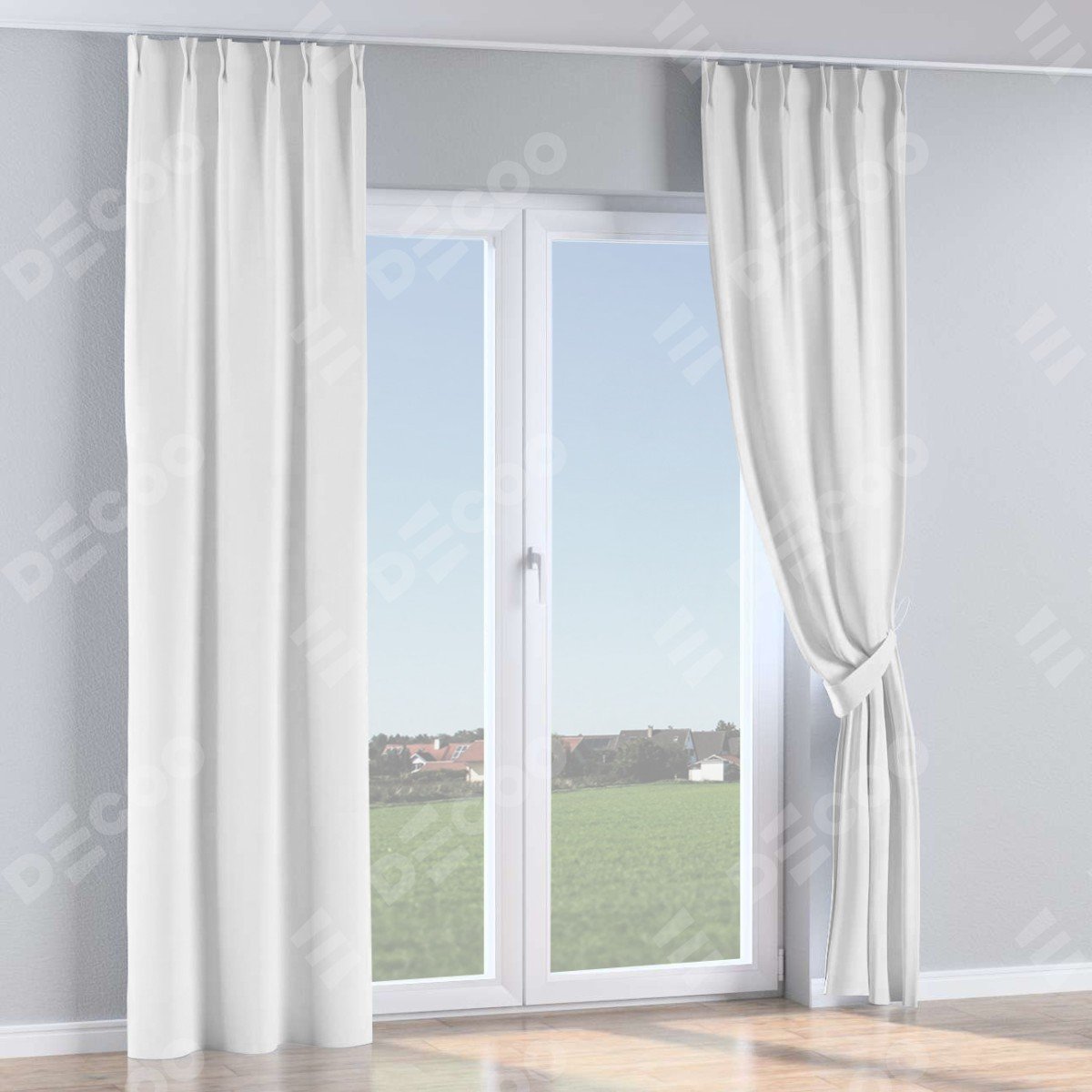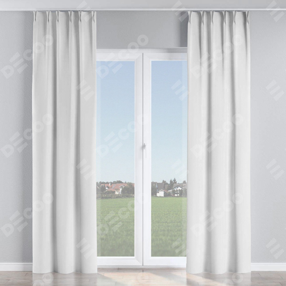 Комплект прямых штор, от производителя «Cortin», пошиты из ткани вельвет белый, артикул ткани 10810. С изнаночной стороны в верхней части штор пристрачивается шторная лента с декоративными складками «Кустик». Для создания элегантных складок прямые шторы шьются по стандарту с коэффициентом 1:2 (на 100 см. ширины проёма 200 см. ширины ткани).