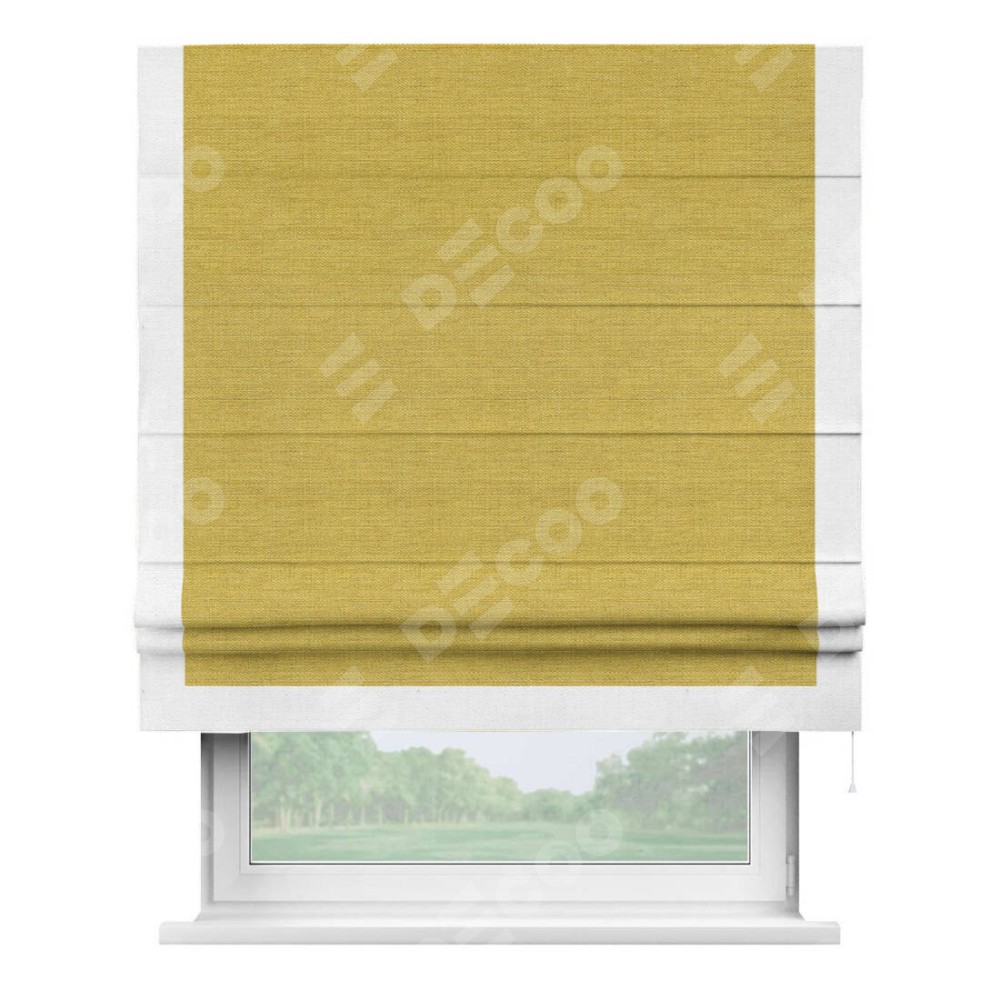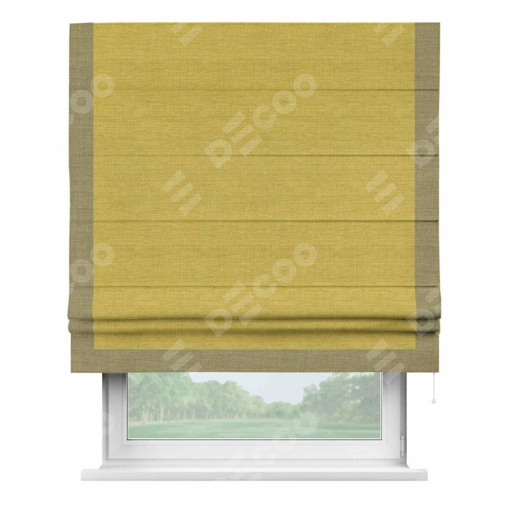 Римская штора производителя «Cortin», используется для проёма, пошита из ткани лён светло-салатовый, артикул 53438. Отделка шторы кантом «Виктория», ткань для канта используется из льна разной расцветки на выбор. Имеет универсальный механизм и подходит для монтажа: на потолок, на стену и в нишу.