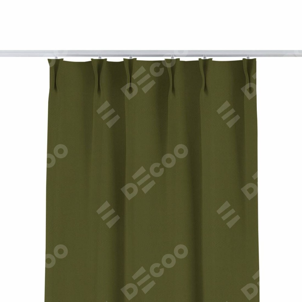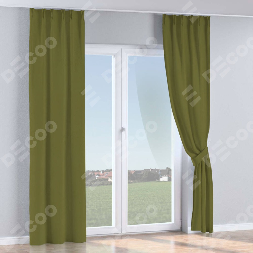 Комплект прямых штор, от производителя «Cortin», пошиты из ткани блэкаут однотонный зелёный, артикул ткани 81859. С изнаночной стороны в верхней части штор пристрачивается шторная лента с декоративными складками «Кустик». Для создания элегантных складок прямые шторы шьются по стандарту с коэффициентом 1:2 (на 100 см. ширины проёма 200 см. ширины ткани).