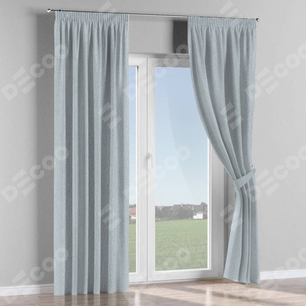 Комплект прямых штор, от производителя «Cortin», пошиты из ткани лён димаут серый, артикул ткани F3. С изнаночной стороны в верхней части штор пристрачивается шторная лента с декоративными складками «Карандаш». Для создания элегантных складок прямые шторы шьются по стандарту с коэффициентом 1:2 (на 100 см. ширины проёма 200 см. ширины ткани).
