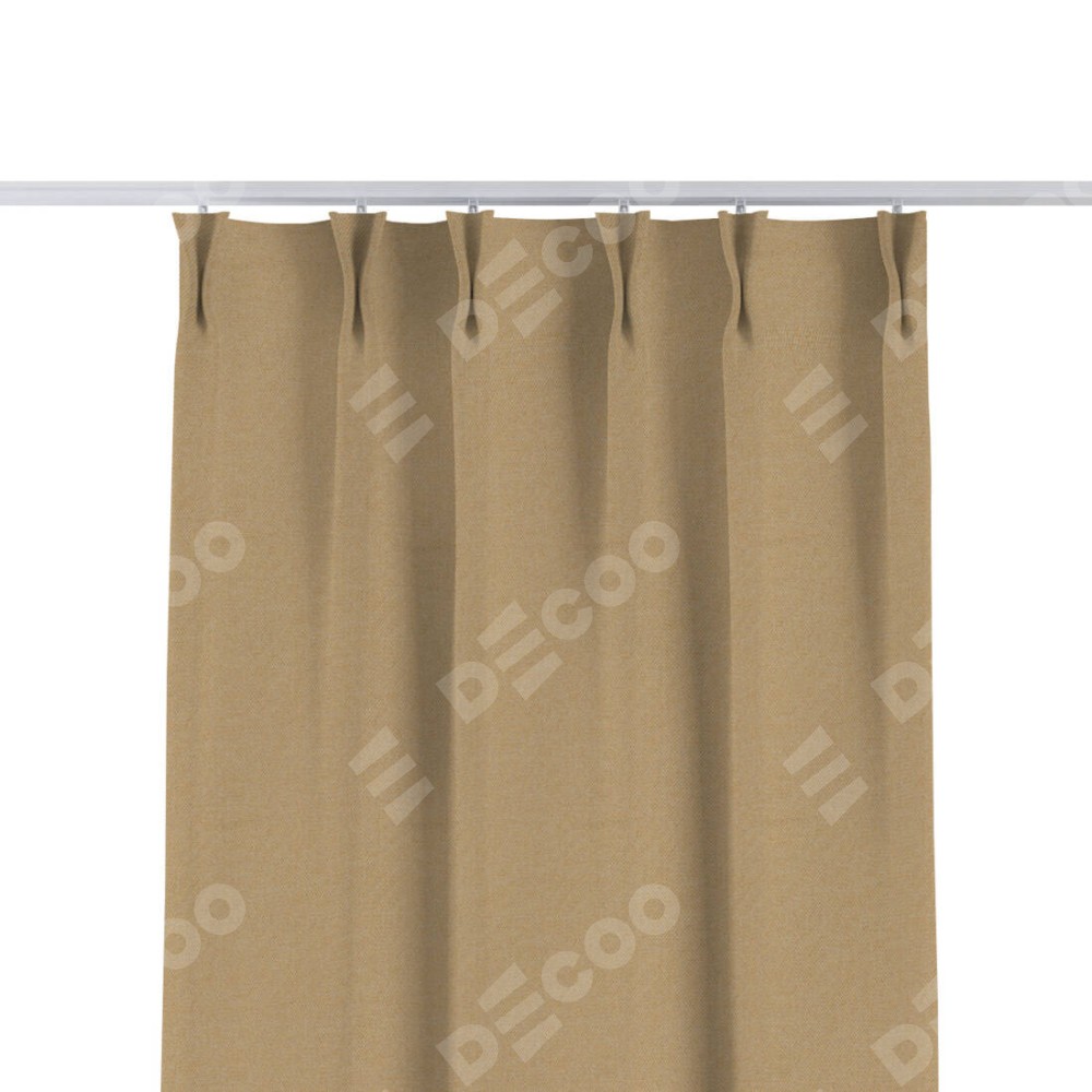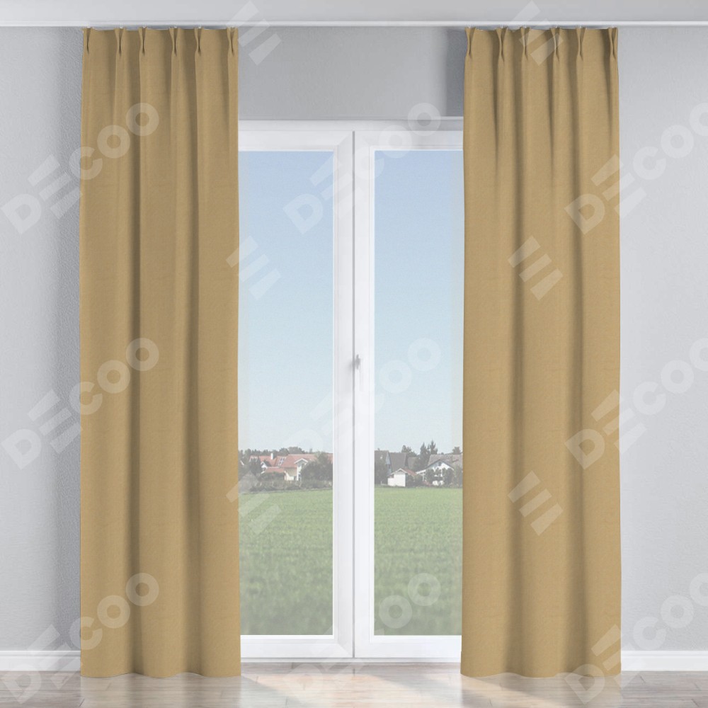 Комплект прямых штор, от производителя «Cortin», пошиты из ткани лён димаут тёмно-бежевый, артикул ткани 83037. С изнаночной стороны в верхней части штор пристрачивается шторная лента с декоративными складками «Кустик». Для создания элегантных складок прямые шторы шьются по стандарту с коэффициентом 1:2 (на 100 см. ширины проёма 200 см. ширины ткани).