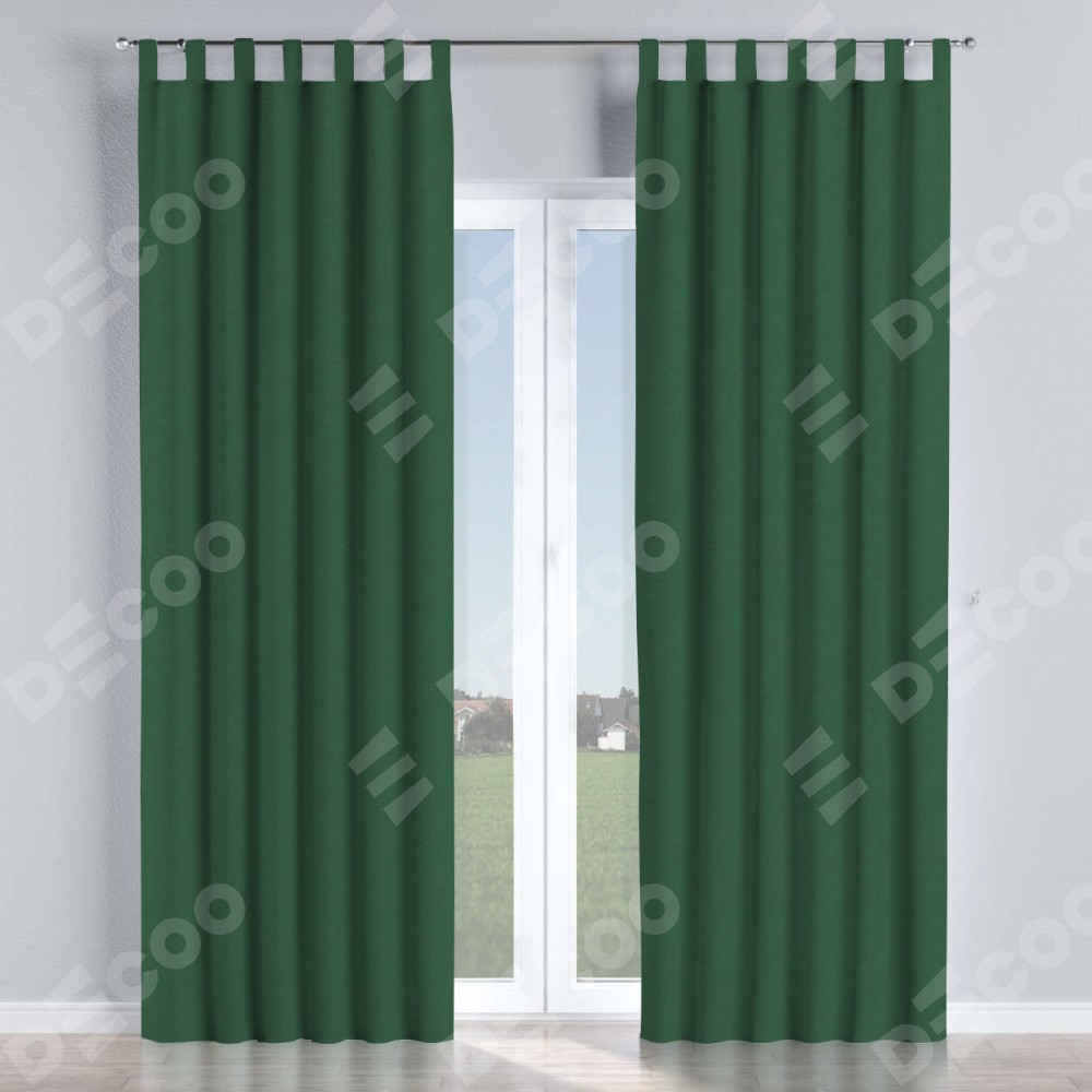 Комплект прямых штор, от производителя «Cortin», пошиты из ткани лён димаут тёмно-зелёный, артикул ткани 16246. Данная модель пошита на петлях, комплектуется на выбор круглым карнизом и подходит для монтажа на стену или потолок. Прямые шторы на петлях шьются по стандарту с коэффициентом 1/2 (на 100 см. ширины проёма 200 см. ширины ткани), отличительным преимуществом данной модели является простой способ монтажа. Достаточно повесить ее на трубу и штора готова!
