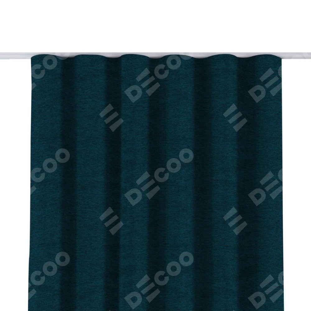 Комплект прямых штор, от производителя «Cortin», пошиты из ткани твид блэкаут глубокий синий, артикул ткани 21590. С изнаночной стороны в верхней части штор пристрачивается шторная лента с декоративными складками «Волна». Для создания элегантных складок прямые шторы шьются по стандарту с коэффициентом 1:2 (на 100 см. ширины проёма 200 см. ширины ткани).