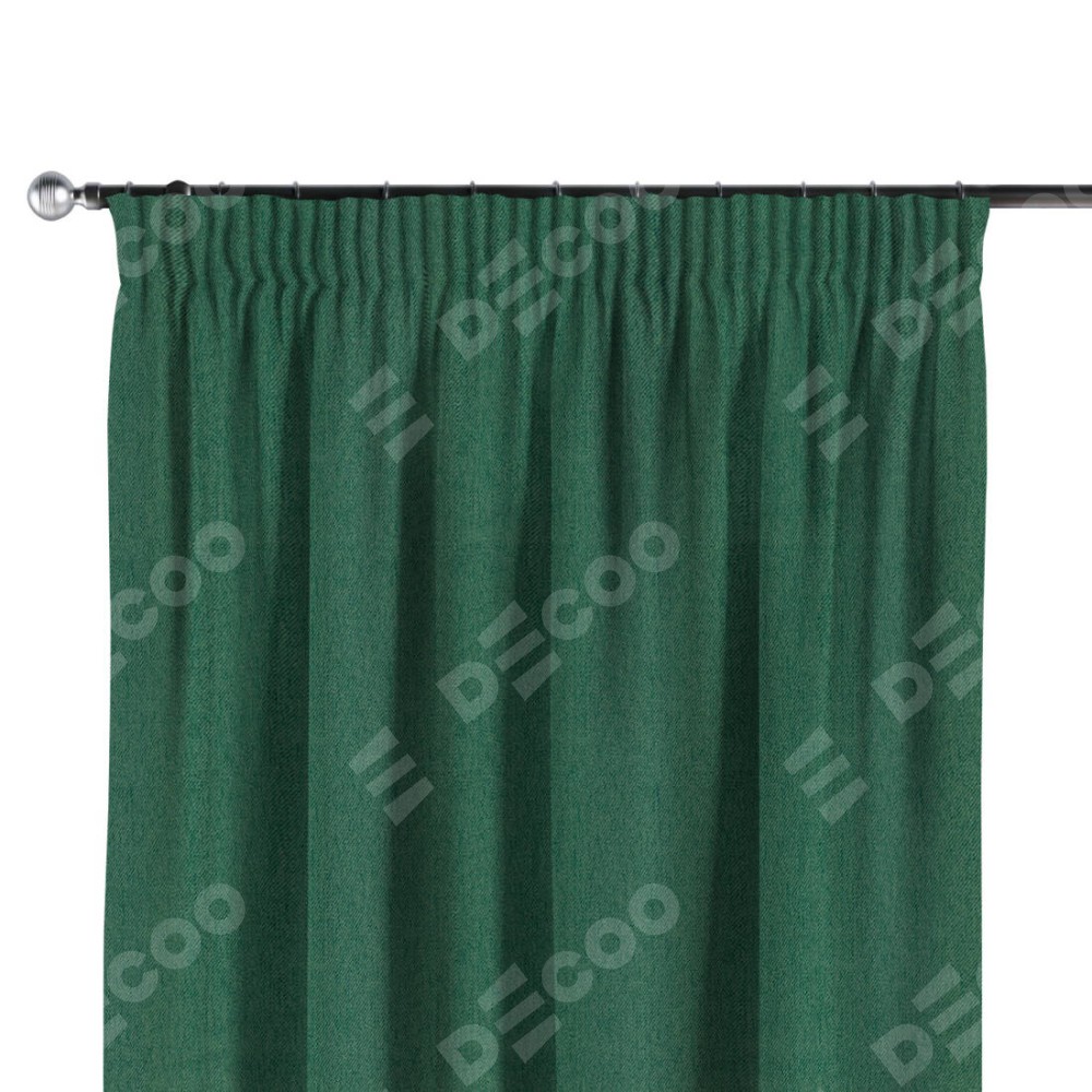 Комплект прямых штор, от производителя «Cortin», пошиты из ткани твид блэкаут зелёный, артикул ткани 21589. С изнаночной стороны в верхней части штор пристрачивается шторная лента с декоративными складками «Карандаш». Для создания элегантных складок прямые шторы шьются по стандарту с коэффициентом 1:2 (на 100 см. ширины проёма 200 см. ширины ткани).