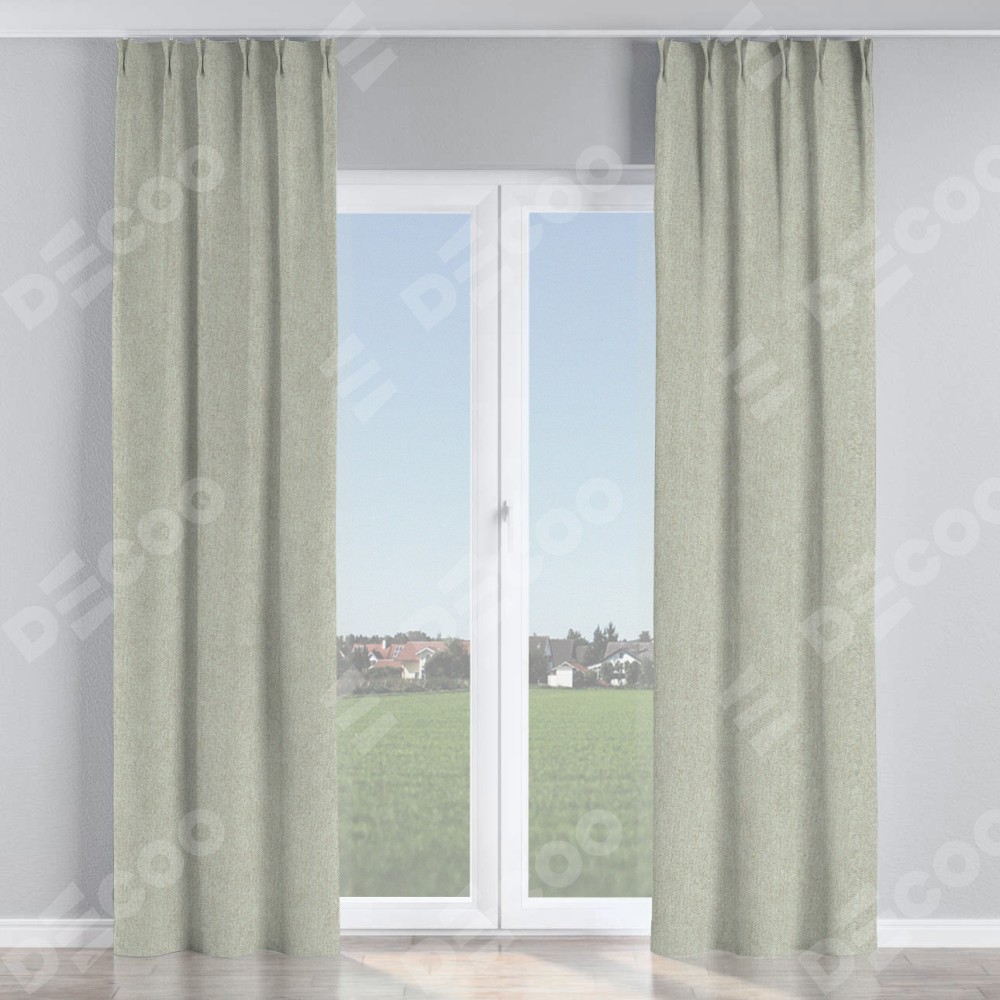 Комплект прямых штор, от производителя «Cortin», пошиты из ткани твид блэкаут коричнево-серый, артикул ткани 21574. С изнаночной стороны в верхней части штор пристрачивается шторная лента с декоративными складками «Кустик». Для создания элегантных складок прямые шторы шьются по стандарту с коэффициентом 1:2 (на 100 см. ширины проёма 200 см. ширины ткани).