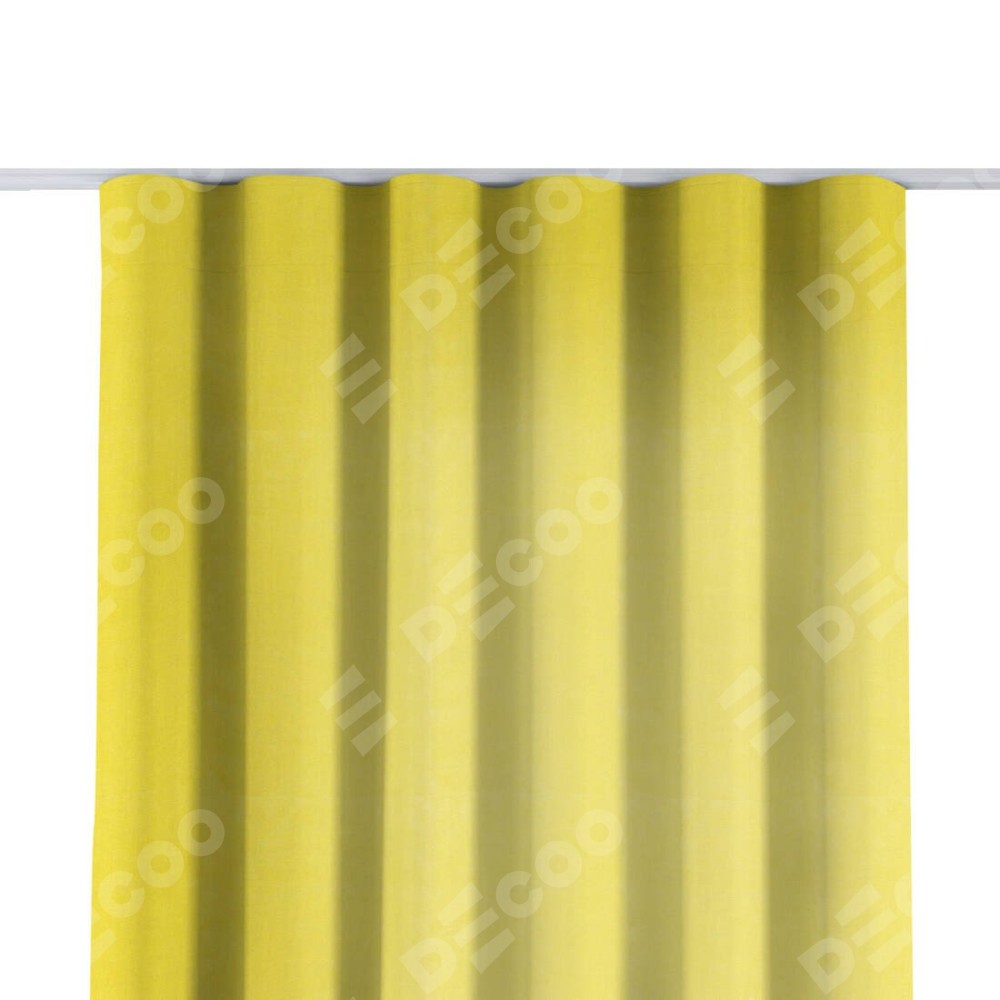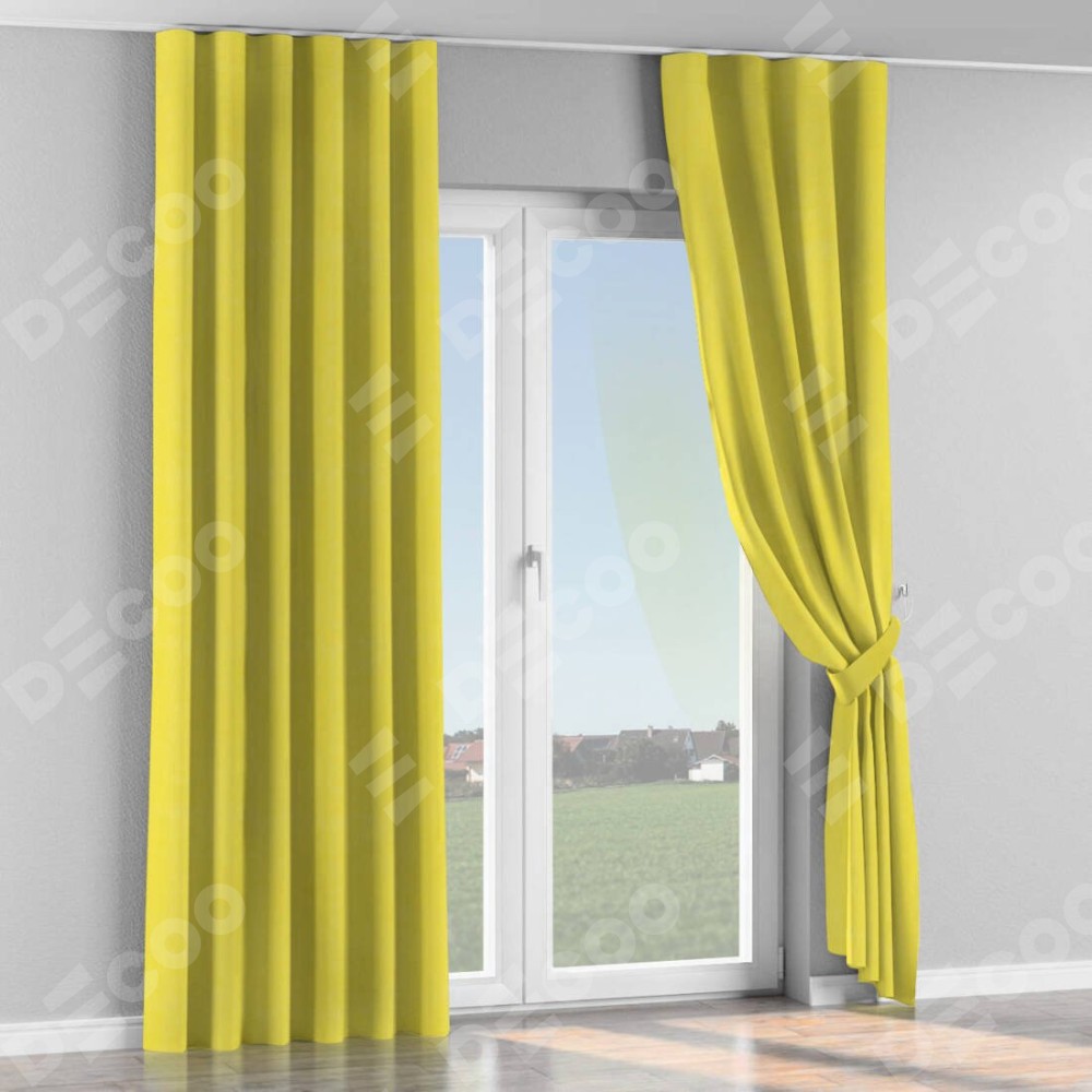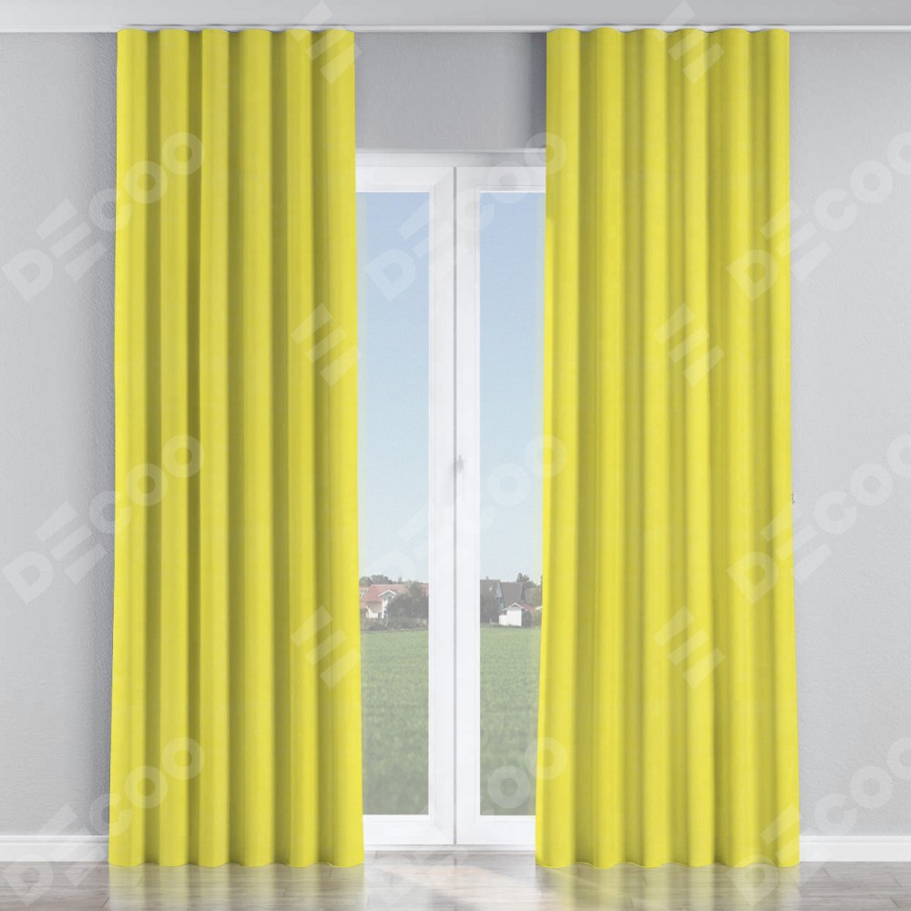Комплект прямых штор, от производителя «Cortin», пошиты из ткани вельвет светло-желтый, артикул ткани 30997. С изнаночной стороны в верхней части штор пристрачивается шторная лента с декоративными складками «Волна». Для создания элегантных складок прямые шторы шьются по стандарту с коэффициентом 1:2 (на 100 см. ширины проёма 200 см. ширины ткани).