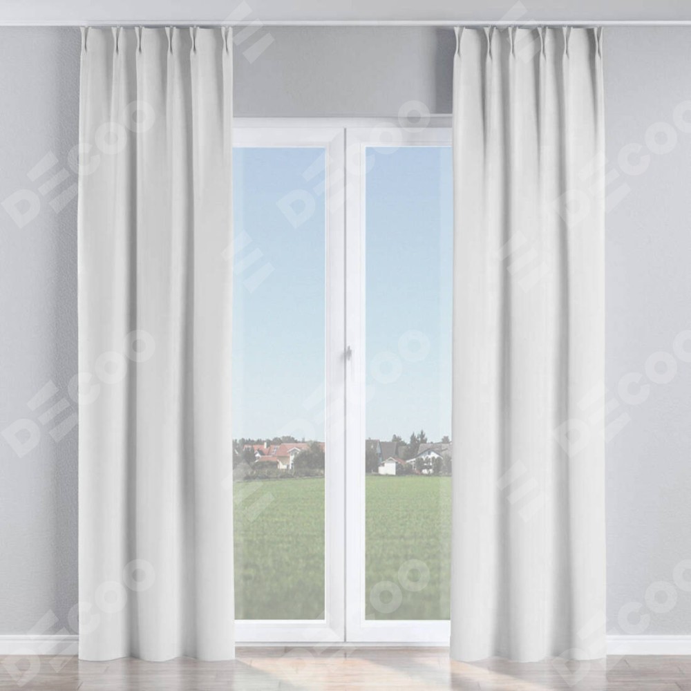 Комплект прямых штор, от производителя «Cortin», пошиты из ткани лён белый, артикул ткани 53430. С изнаночной стороны в верхней части штор пристрачивается шторная лента с декоративными складками «Кустик». Для создания элегантных складок прямые шторы шьются по стандарту с коэффициентом 1:2 (на 100 см. ширины проёма 200 см. ширины ткани).