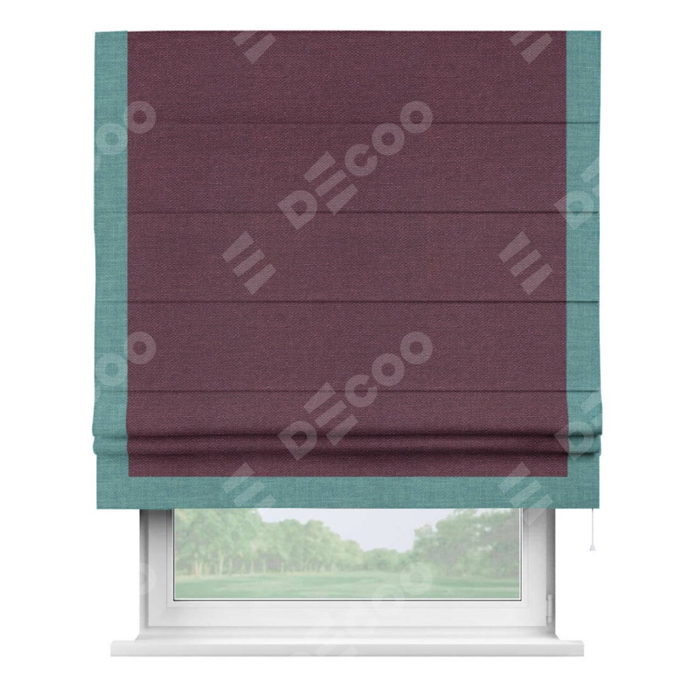 Римская штора производителя «Cortin», используется для проёма, пошита из ткани лён фиолетовый, артикул 85907. Отделка шторы кантом «Виктория», ткань для канта используется из льна разной расцветки на выбор. Имеет универсальный механизм и подходит для монтажа: на потолок, на стену и в нишу.