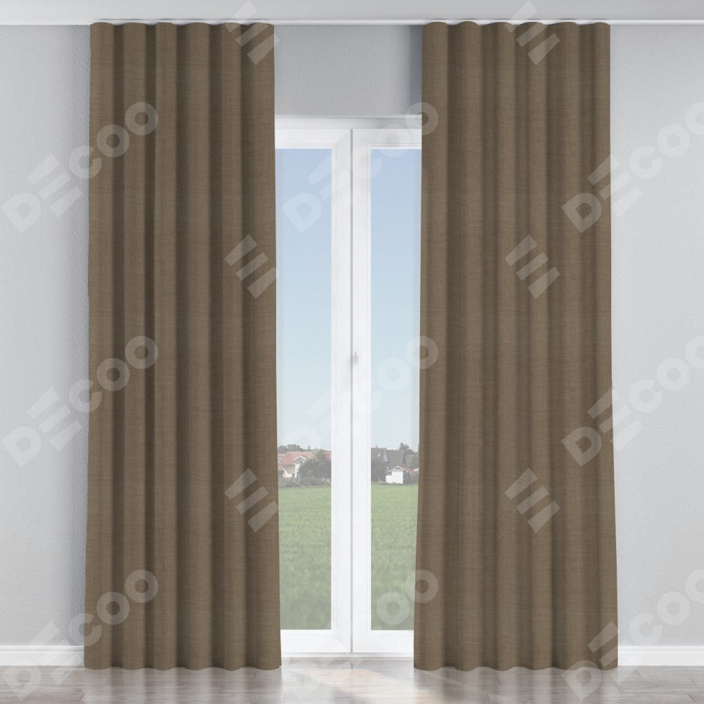 Комплект прямых штор, от производителя «Cortin», пошиты из ткани лён мокко, артикул ткани 7444. С изнаночной стороны в верхней части штор пристрачивается шторная лента с декоративными складками «Волна». Для создания элегантных складок прямые шторы шьются по стандарту с коэффициентом 1:2 (на 100 см. ширины проёма 200 см. ширины ткани).