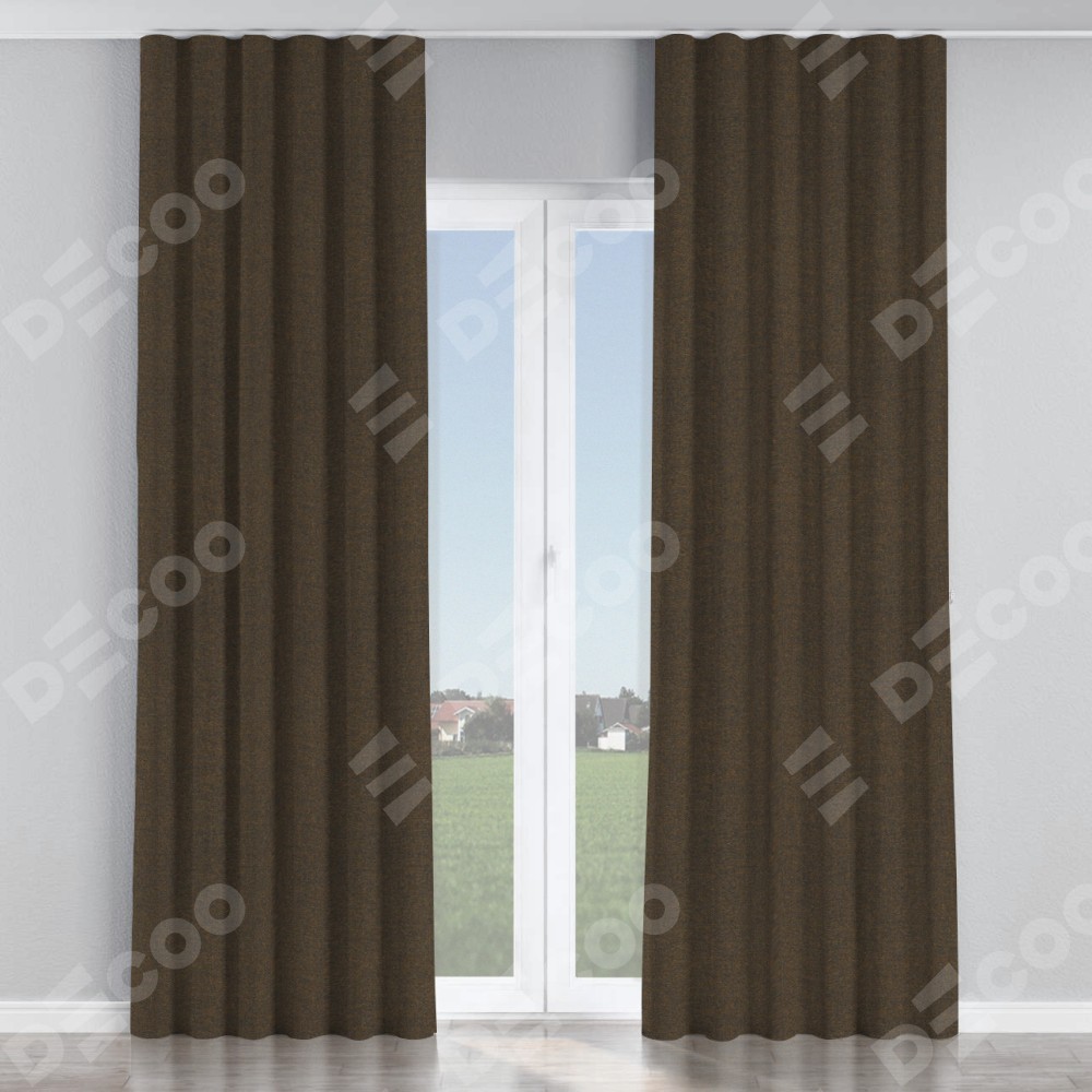 Комплект прямых штор, от производителя «Cortin», пошиты из ткани лён тёмно-коричневый, артикул ткани 53444. С изнаночной стороны в верхней части штор пристрачивается шторная лента с декоративными складками «Волна». Для создания элегантных складок прямые шторы шьются по стандарту с коэффициентом 1:2 (на 100 см. ширины проёма 200 см. ширины ткани).