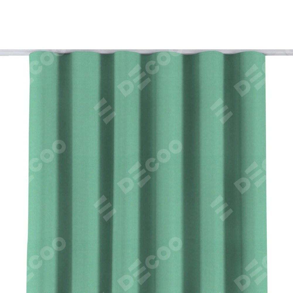 Комплект прямых штор, от производителя «Cortin», пошиты из ткани pipa блэкаут бирюза, артикул ткани 81852. С изнаночной стороны в верхней части штор пристрачивается шторная лента с декоративными складками «Волна». Для создания элегантных складок прямые шторы шьются по стандарту с коэффициентом 1:2 (на 100 см. ширины проёма 200 см. ширины ткани).