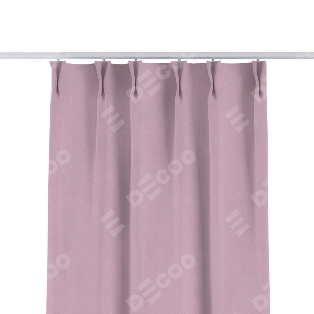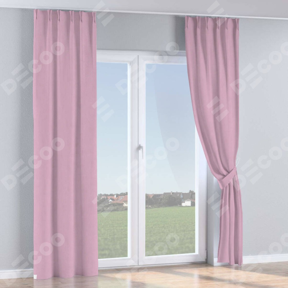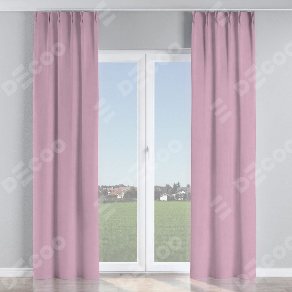 Комплект прямых штор, от производителя «Cortin», пошиты из ткани pipa блэкаут розовый, артикул ткани 12091. С изнаночной стороны в верхней части штор пристрачивается шторная лента с декоративными складками «Кустик». Для создания элегантных складок прямые шторы шьются по стандарту с коэффициентом 1:2 (на 100 см. ширины проёма 200 см. ширины ткани).