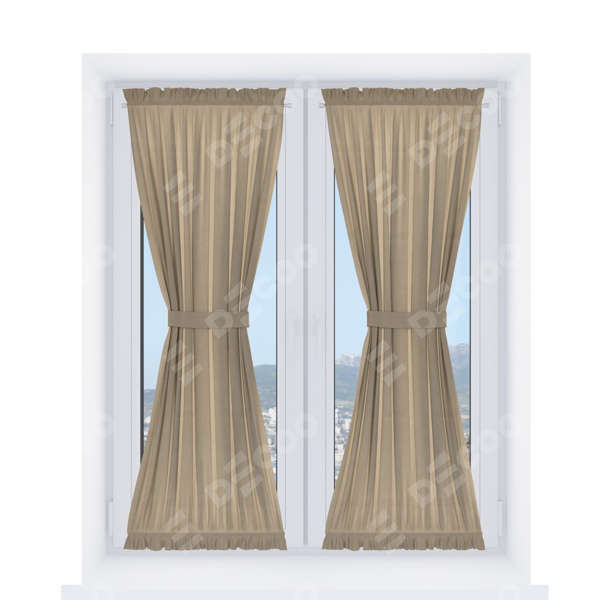 Штора «Песочные часы» производителя «Cortin», используется для створок окон и дверей, пошита из ткани вельвет кофейный, артикул ткани 30980.