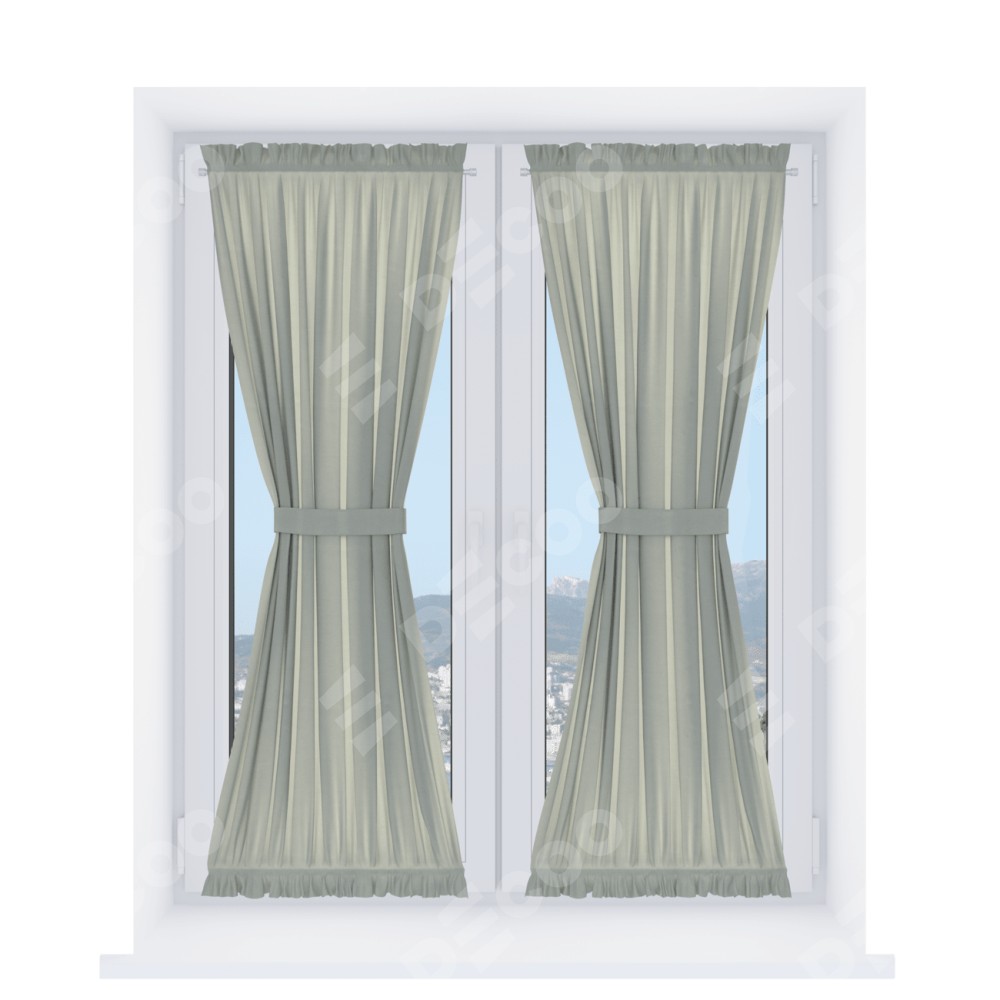 Штора «Песочные часы» производителя «Cortin», используется для створок окон и дверей, пошита из ткани вельвет светло-серый, артикул ткани 30981.