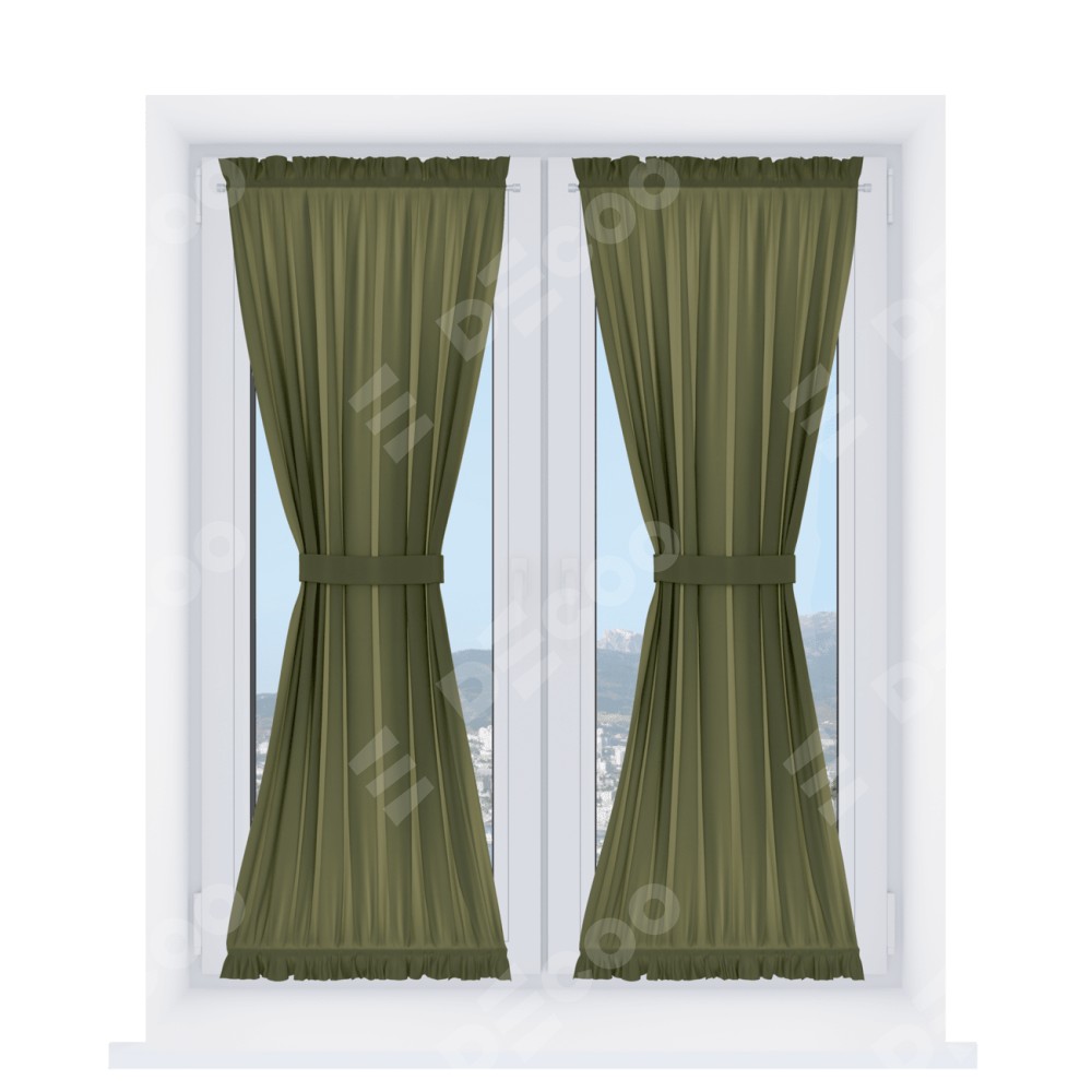 Штора «Песочные часы» производителя «Cortin», используется для створок окон и дверей, пошита из ткани блэкаут однотонный зелёный, артикул ткани 81859.