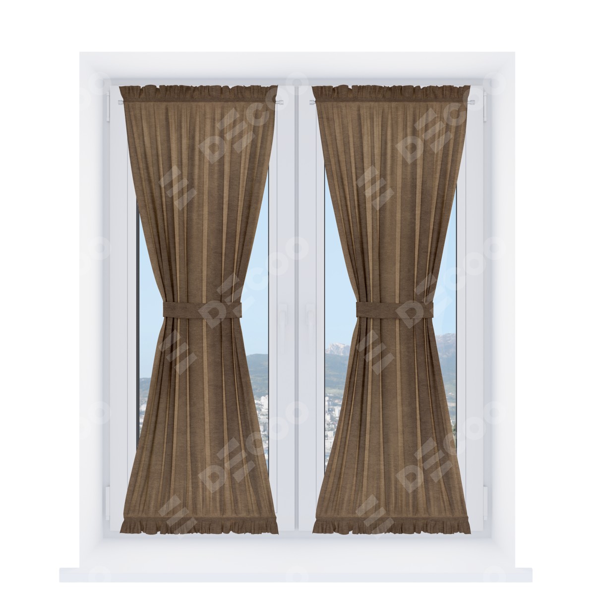 Штора «Песочные часы» производителя «Cortin», используется для створок окон и дверей, пошита из ткани софт однотонный бронзовый, артикул ткани 33099.