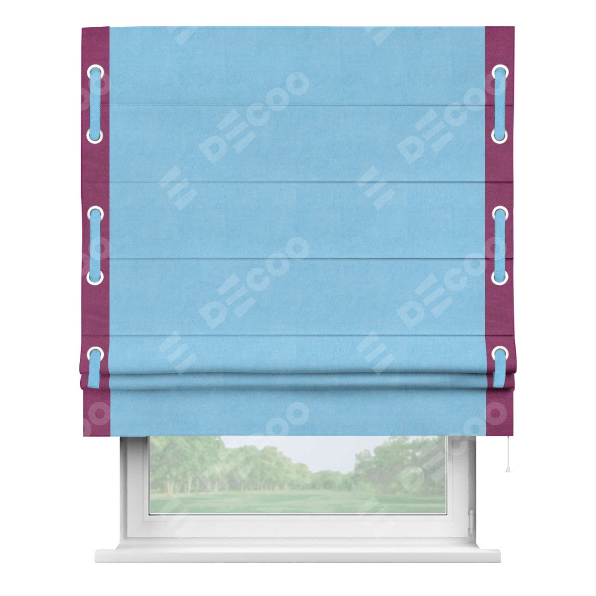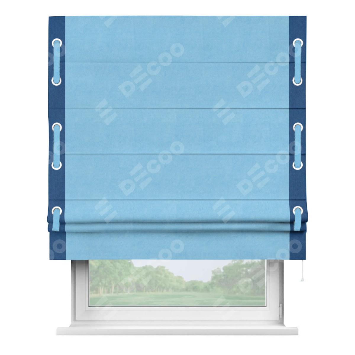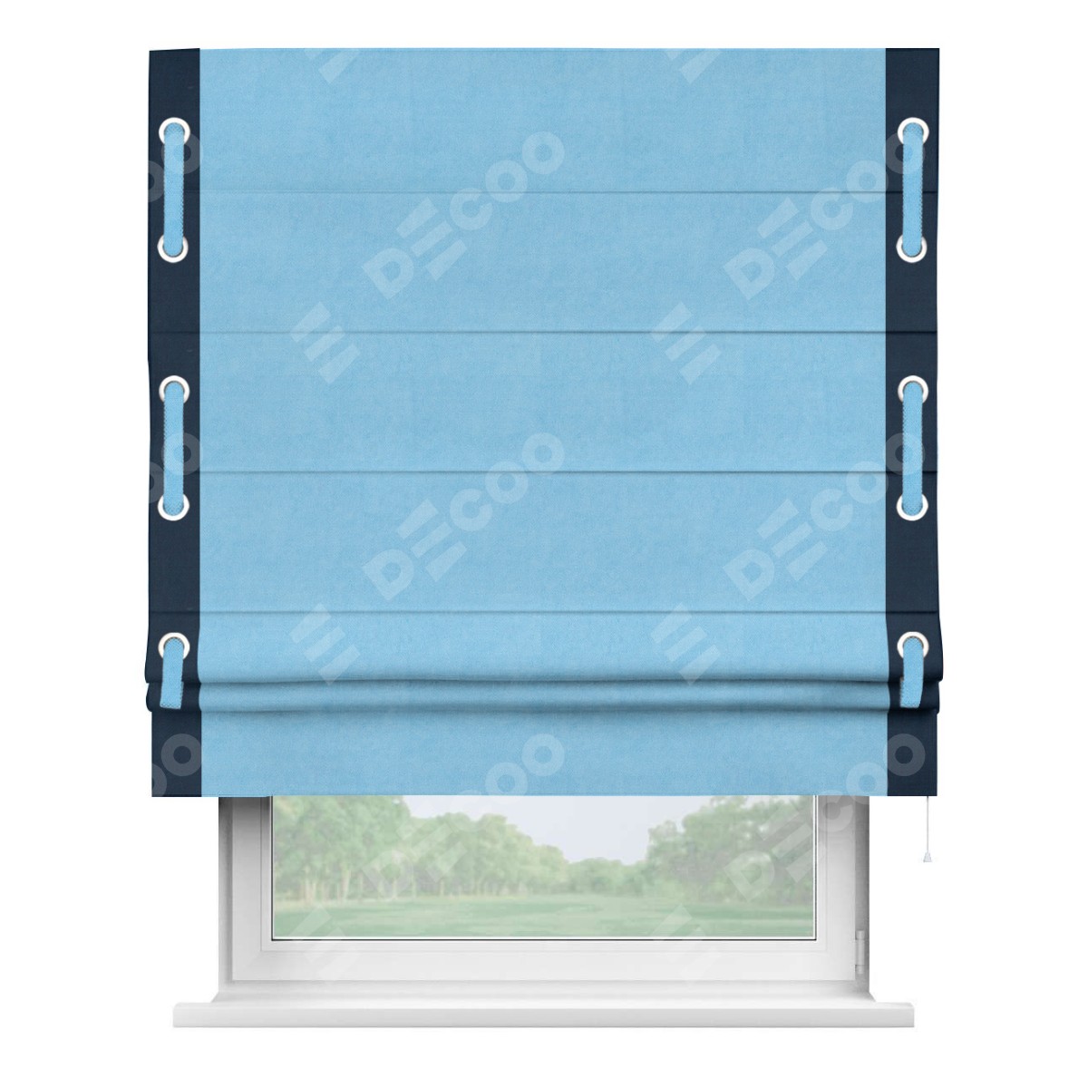 Римская штора «Кортин» с кантом Стрим Дуо (люверсы с пояском), для проема, ткань вельвет голубой