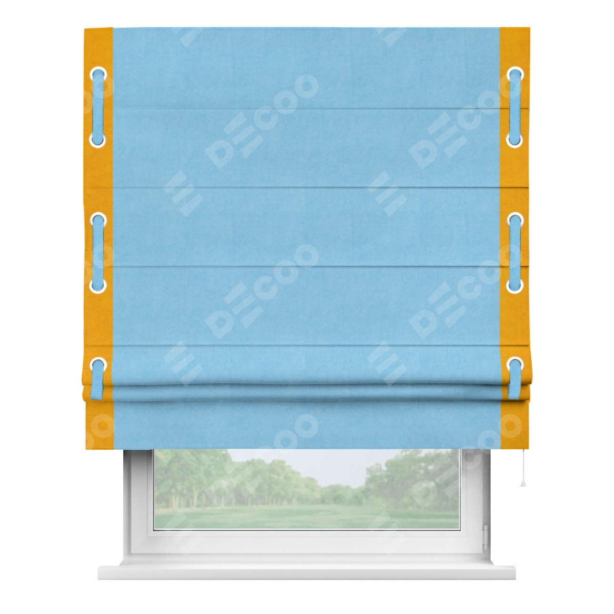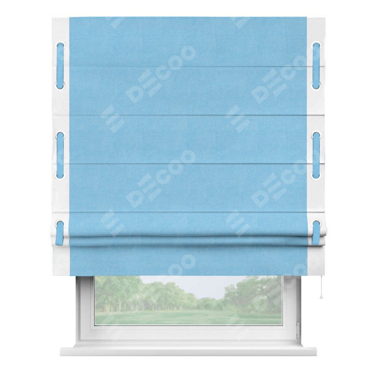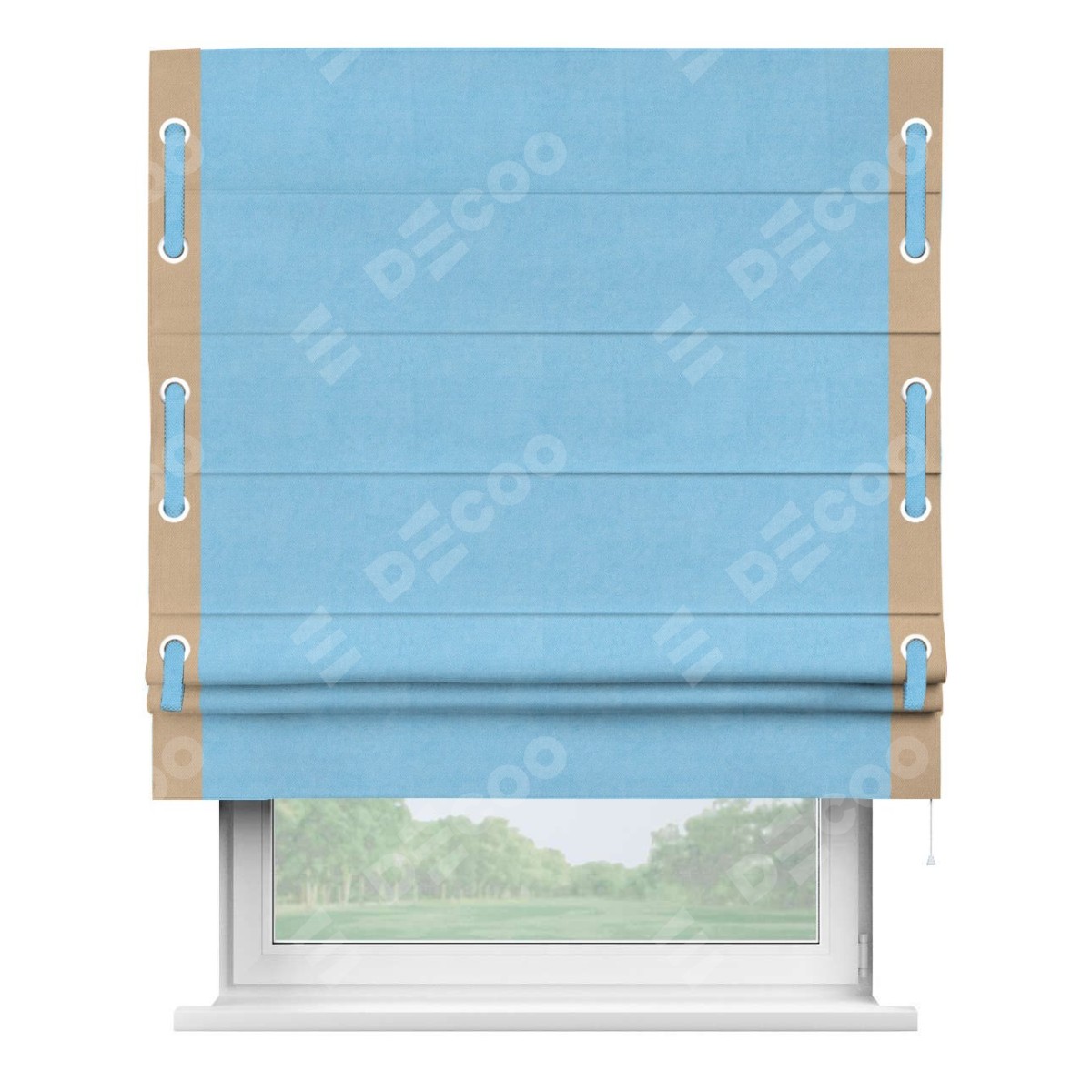 Римская штора «Кортин» с кантом Стрим Дуо (люверсы с пояском), для проема, ткань вельвет голубой