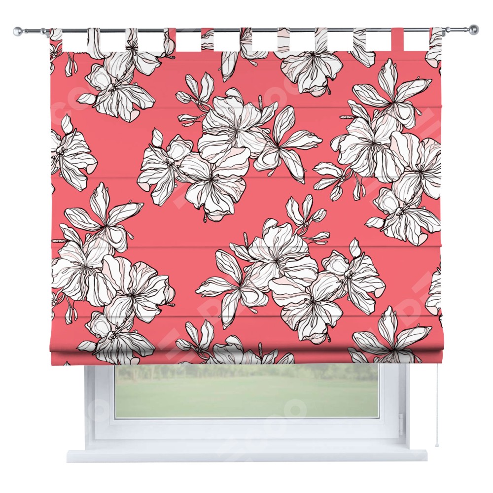 Римская штора производителя «Cortin», используется для проёма, пошита из ткани блэкаут с нанесением сублимационной печати «Белые цветы». Данная модель пошита на петлях, комплектуется на выбор круглым карнизом и подходит для монтажа на стену. Римская штора на петлях имеет простую систему регулировки высоты, отличительным преимуществом данной модели является простой способ монтажа. Достаточно повесить ее на трубу и штора готова!