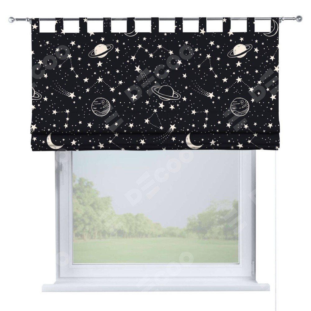 Римская штора производителя «Cortin», используется для проёма, пошита из ткани блэкаут с нанесением сублимационной печати «Глубокий космос». Данная модель пошита на петлях, комплектуется на выбор круглым карнизом и подходит для монтажа на стену. Римская штора на петлях имеет простую систему регулировки высоты, отличительным преимуществом данной модели является простой способ монтажа. Достаточно повесить ее на трубу и штора готова!